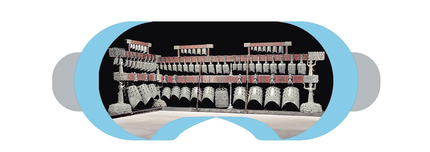 当参观者“脚步”停留在编钟面前时,画面出现了一个不停跳动的按钮。点击进去,就是编钟的文字资料,图文并茂,避免走马观花。