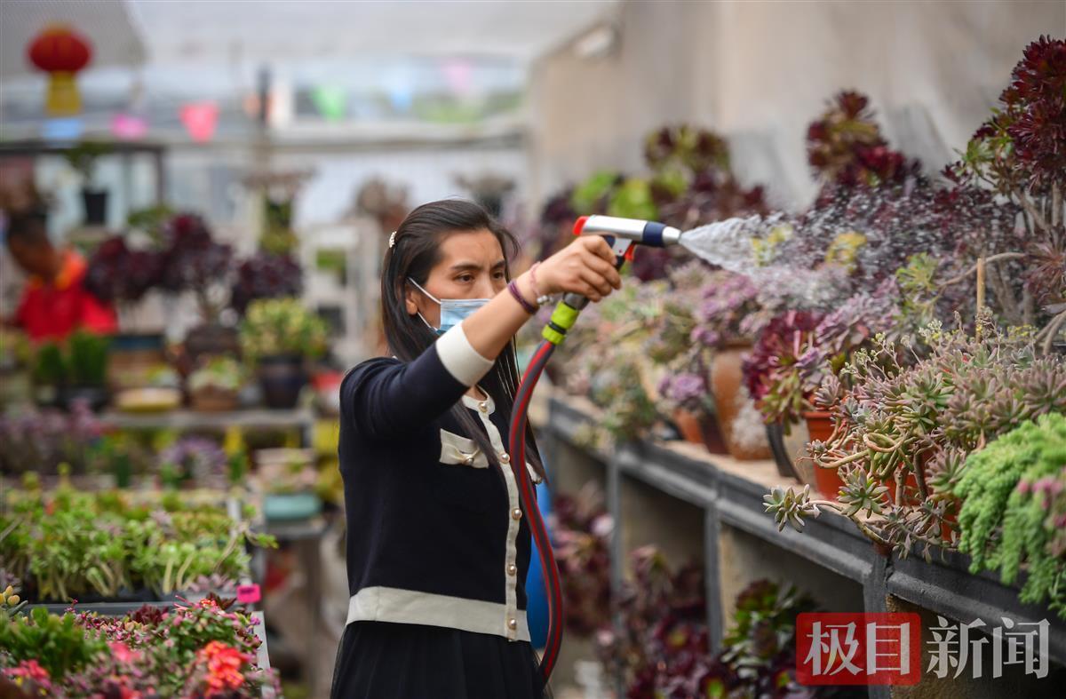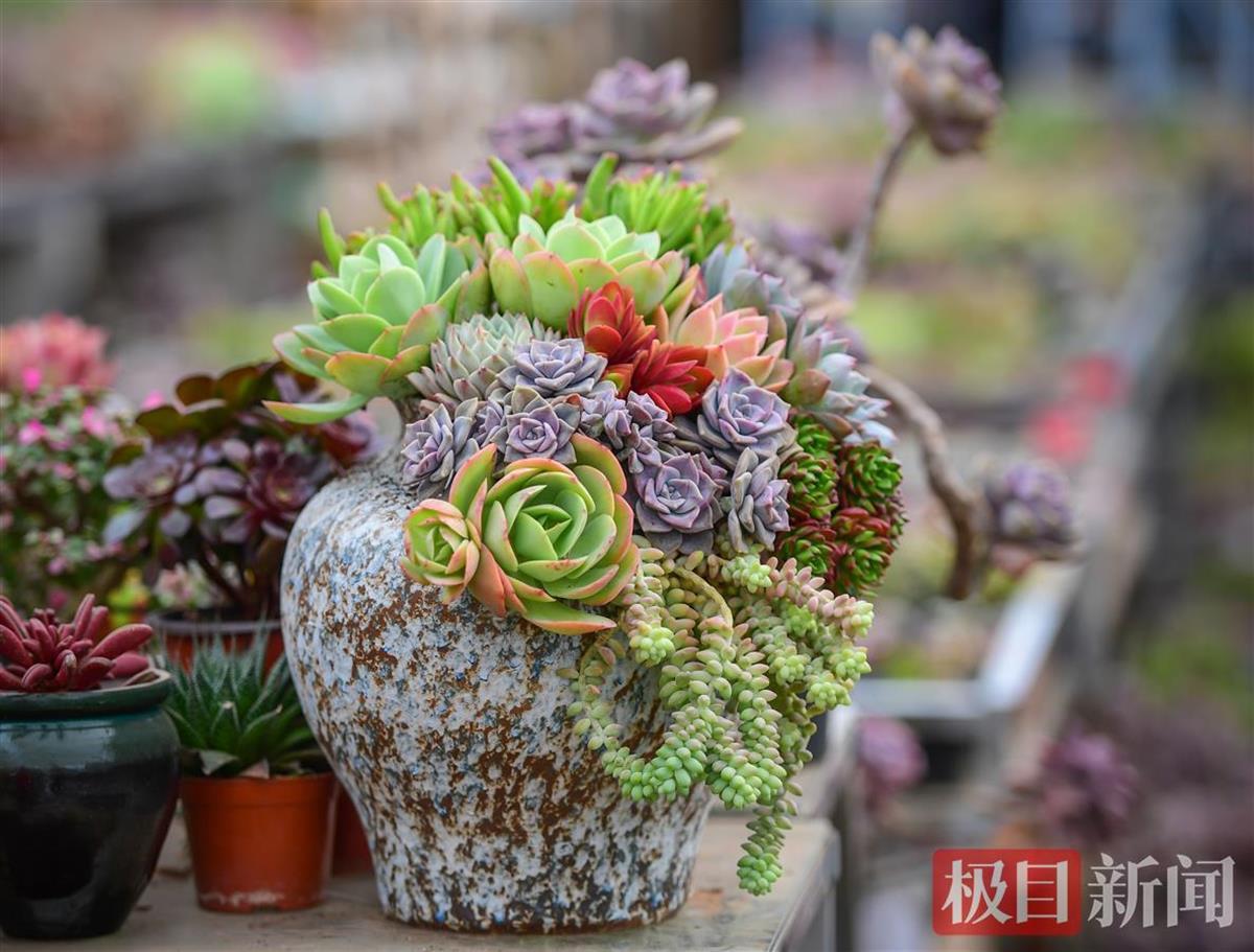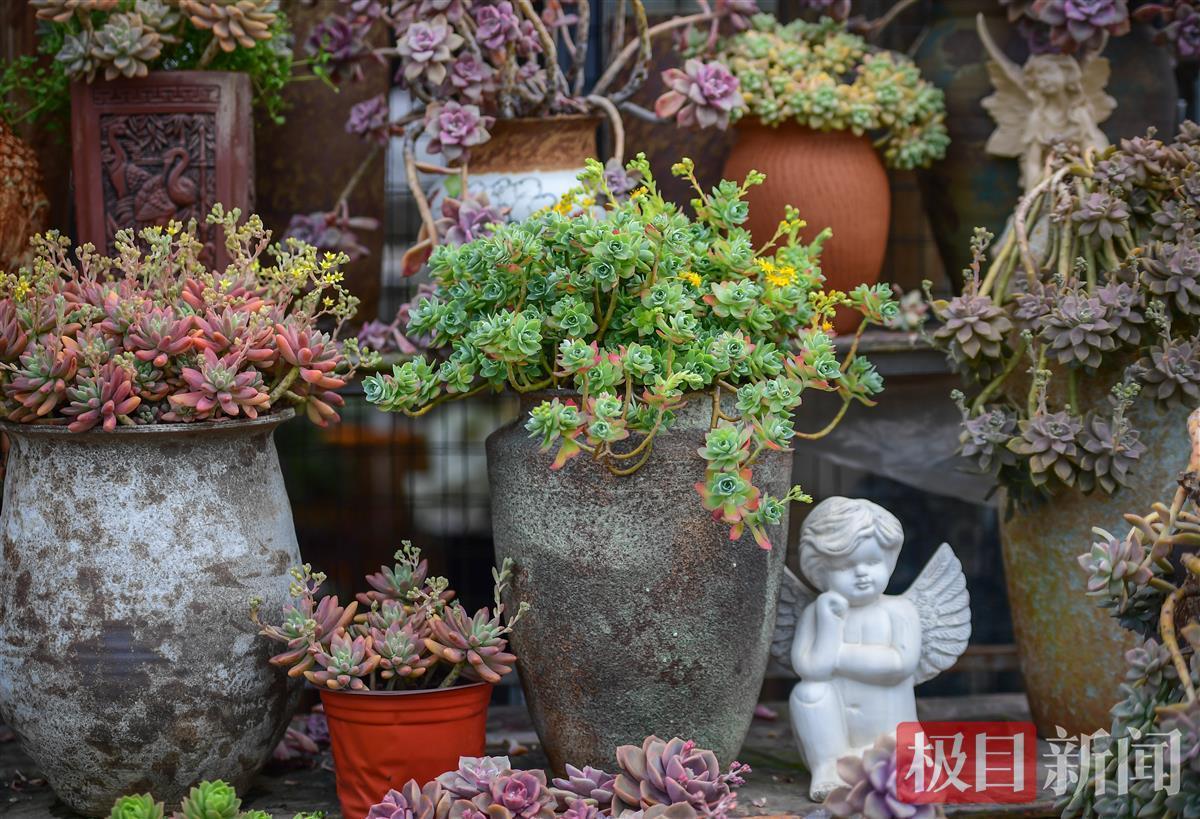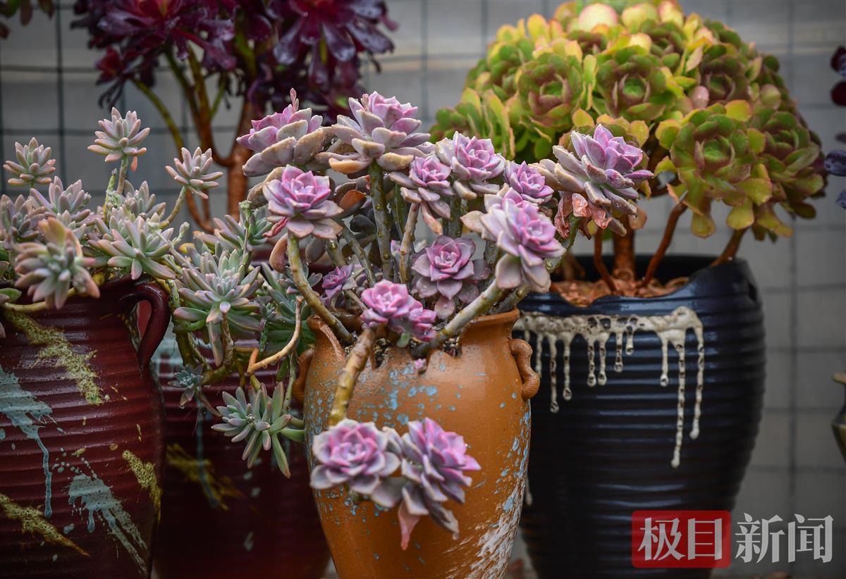 “养多肉最怕就是浇水多,因为多肉是一种喜干不喜湿的植物,所以不用频繁浇水的。不干不浇,浇则浇透,这样才能保证最底部的根系也能吸收到水分。”花店老板对记者说。