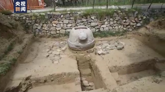 陕西省考古研究院副研究员 席琳:我们发现温江多遗址的这件龟趺,基本是在它原始的位置上,这通石碑它整体上是一个龟趺碑座、庑殿顶形制,与唐蕃会盟碑的形制基本是相同的。