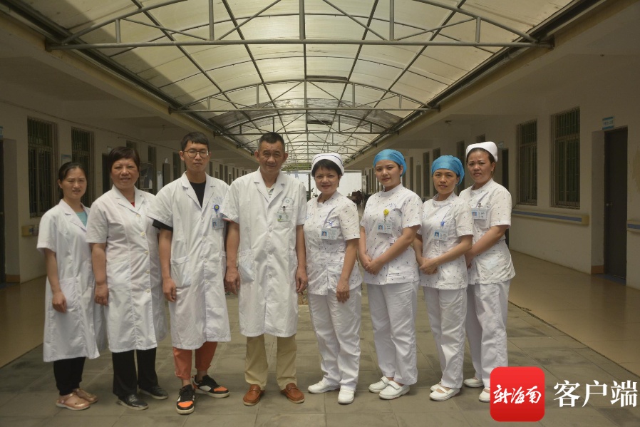 邢少云(右四)与海南省第五人民医院麻风康复区医护团队合影。记者王洪旭摄