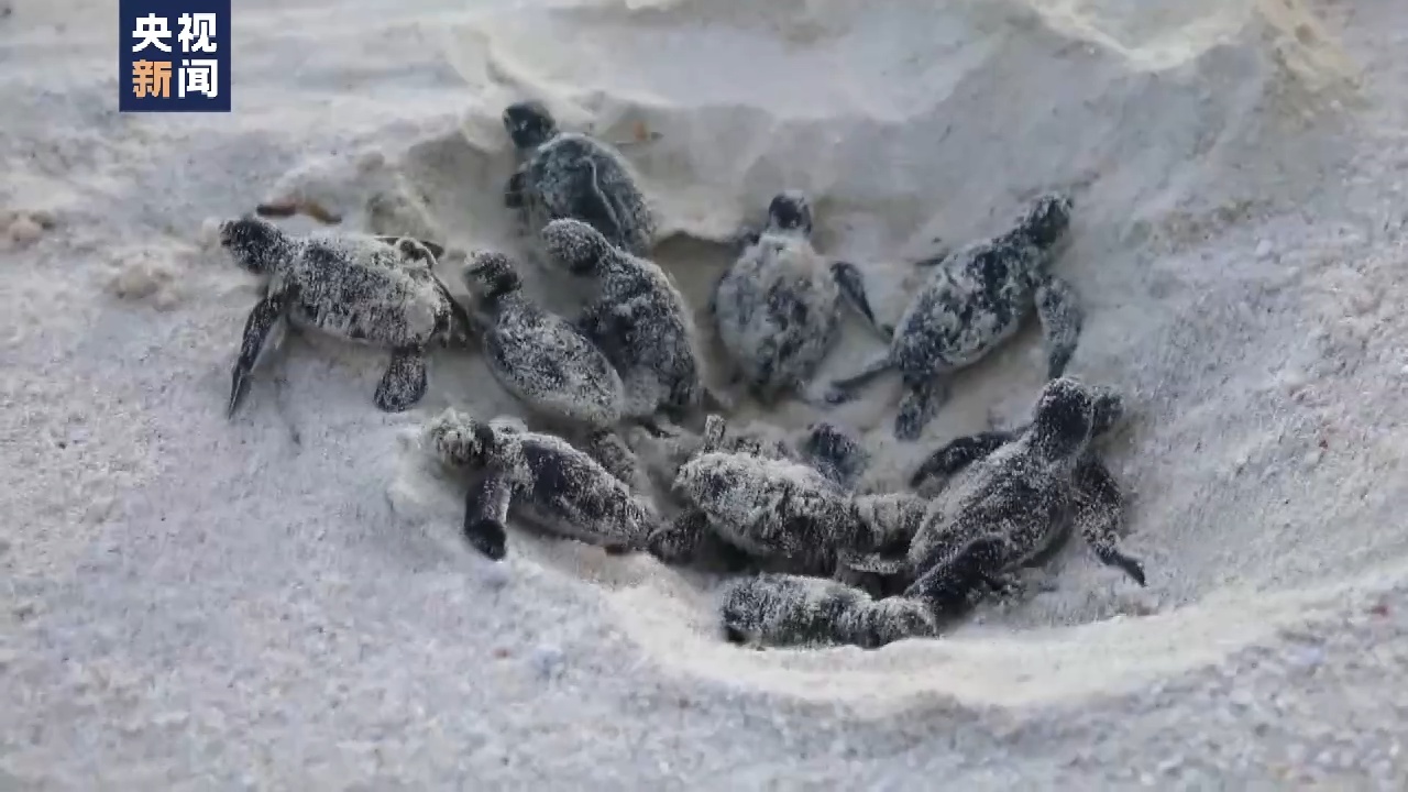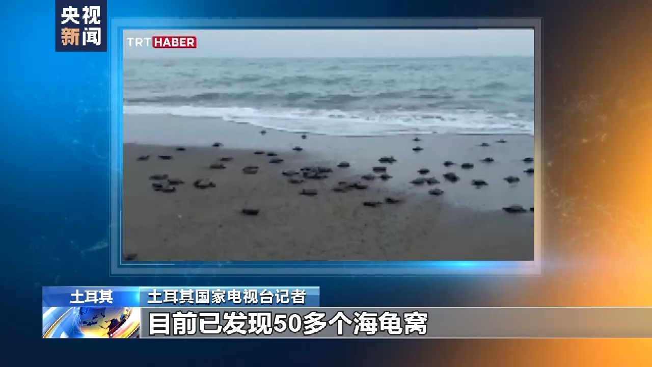 土耳其国家电视台记者:约1.5公里的海岸线上,目前已发现50多个海龟窝。团队已清除了幼龟破壳后前往海洋的行进道路中可能遇到的全部异物。