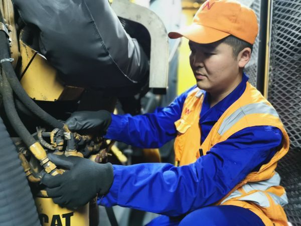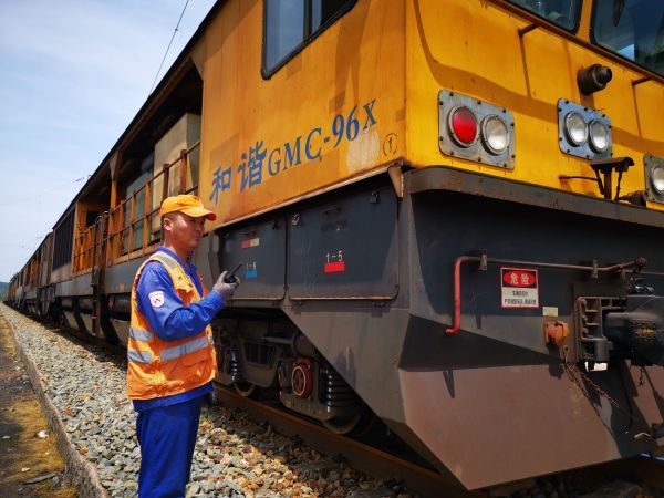 28岁的杨宝峰是维修四车间线磨二队车长,日常主要负责施工组织以及车辆保养等工作。8时,杨宝峰组织工友两人一组对车辆悬挂装置、制动装置、发动机、作业装置及电气仪表、油位等进行全方位检查,各个号位检查整备就绪后,打磨车按计划运行至施工车站。