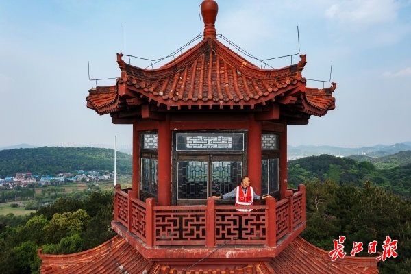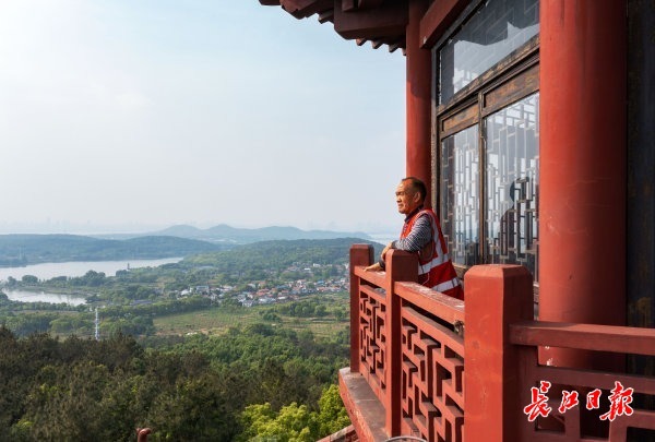 “老话说,看山守湖断六亲,我做这件事,就要对它负责。”自聘任那天起,陈耀文就把家“搬”到这座塔上,前6年是他独自一人守山,一年难得回鄂州老家看老伴1次,2020年老伴干脆收拾包袱也住上山。“我陪着也有个伴。”陈耀文的老伴说。