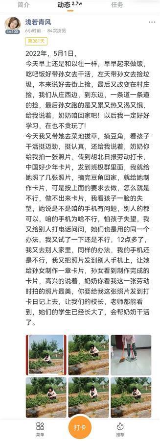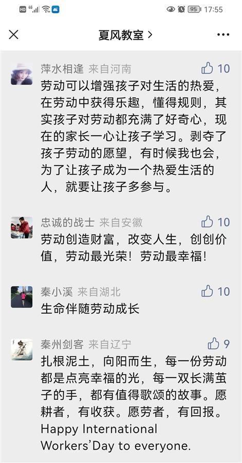 这样的文字引起了许多教育者和家长的共鸣,留言也显示,很多人都希望劳动“成为每一个孩子生命里的一部分”“成为一种意识、一种习惯、一种状态、一种本能”。