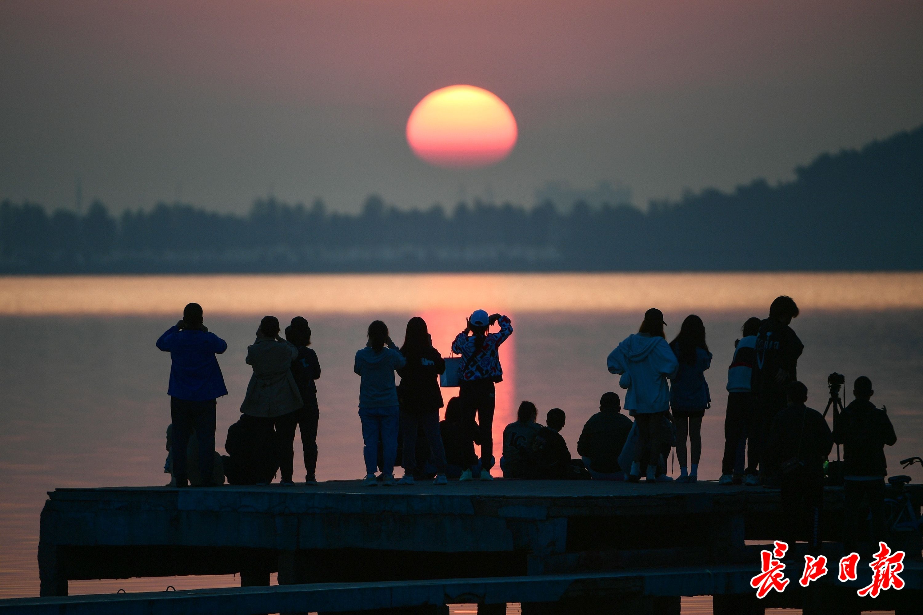 长江日报大武汉客户端5月4日讯 5月4日是国际青年节,清晨5时,不少大学生和市民等候在武汉市东湖凌波门湖边,准备迎接当天的第一缕阳光。在金色朝阳照耀下,一张张青春的面孔朝气蓬勃,活力无限。