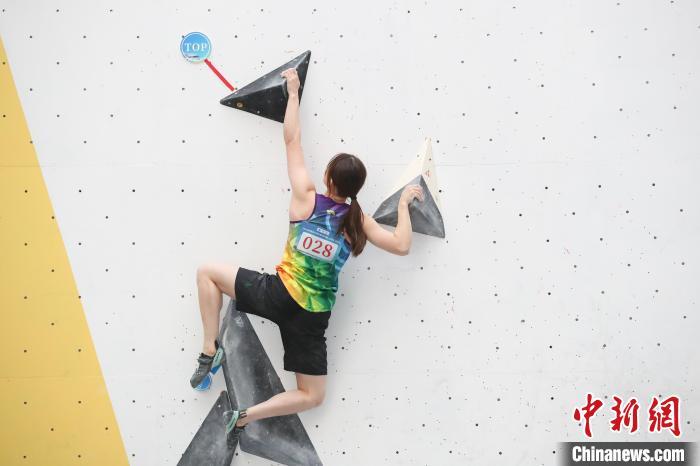 陕西代表队的028号运动员骆知鹭在女子两项全能(攀石)比赛中。 瞿宏伦 摄