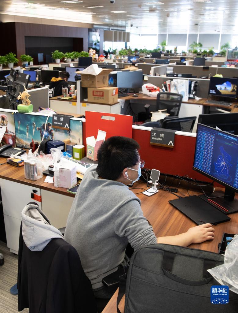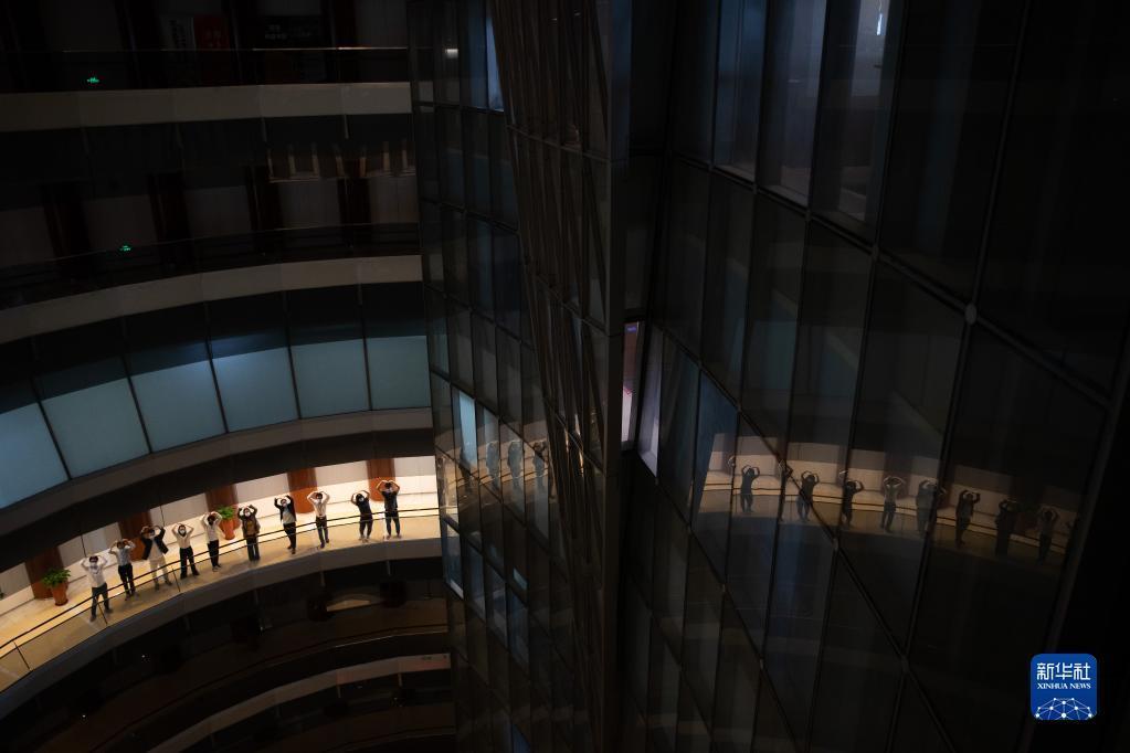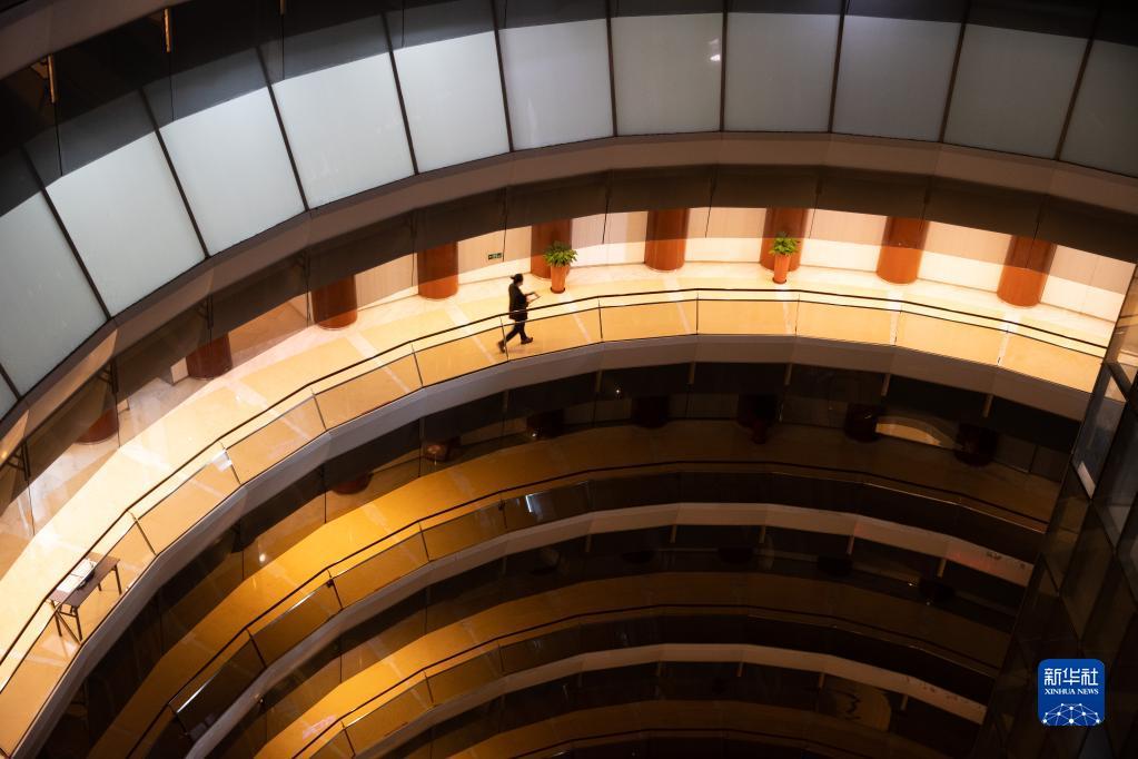 5月4日,在浦东陆家嘴平安金融大厦,平安资产管理有限责任公司员工陈吉佶和同事开完视频会议后,走回办公室。