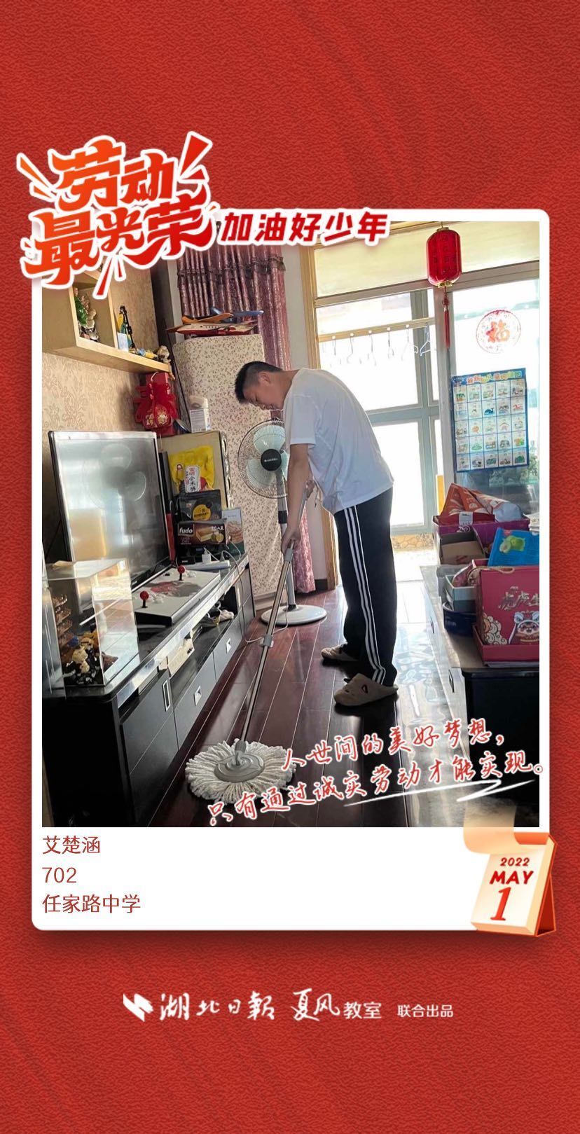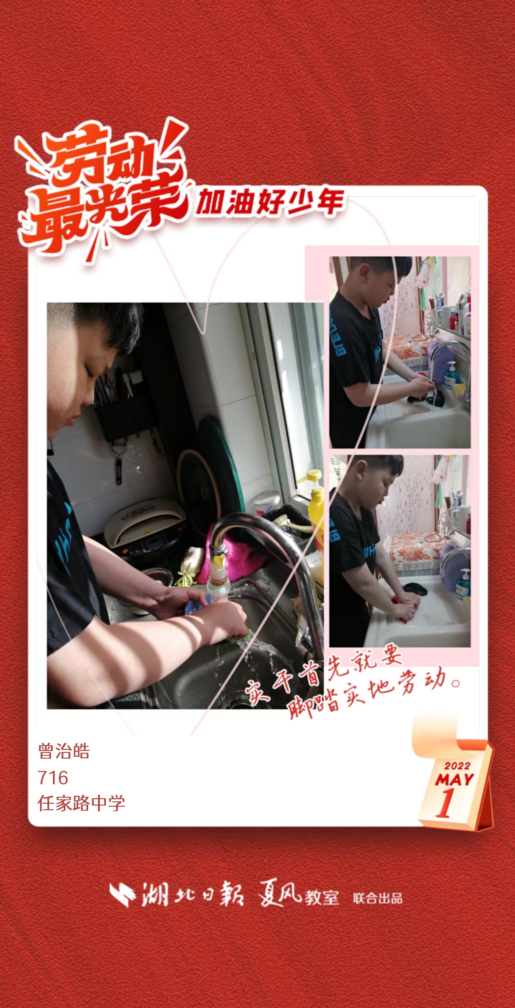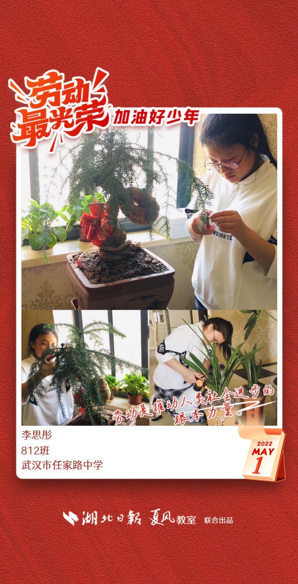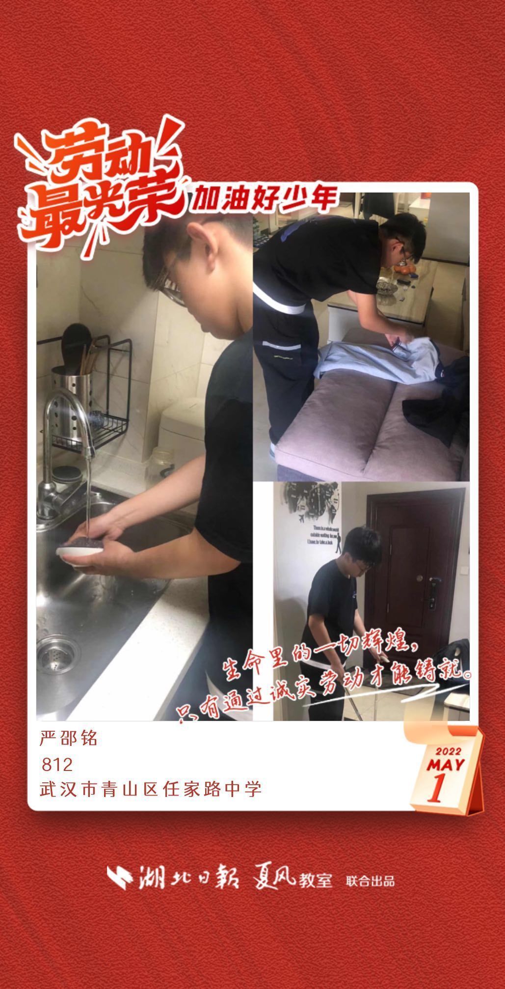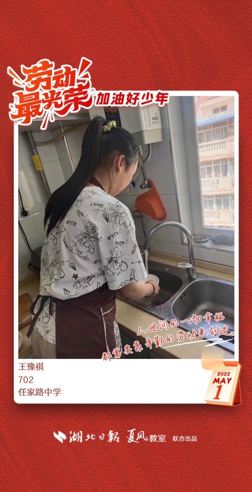 以下是来自武汉市任家路中学的孩子们晒出的劳动海报,为他们点个赞吧!