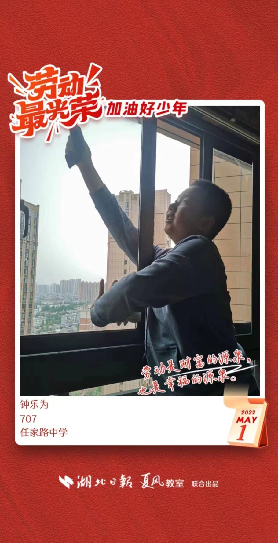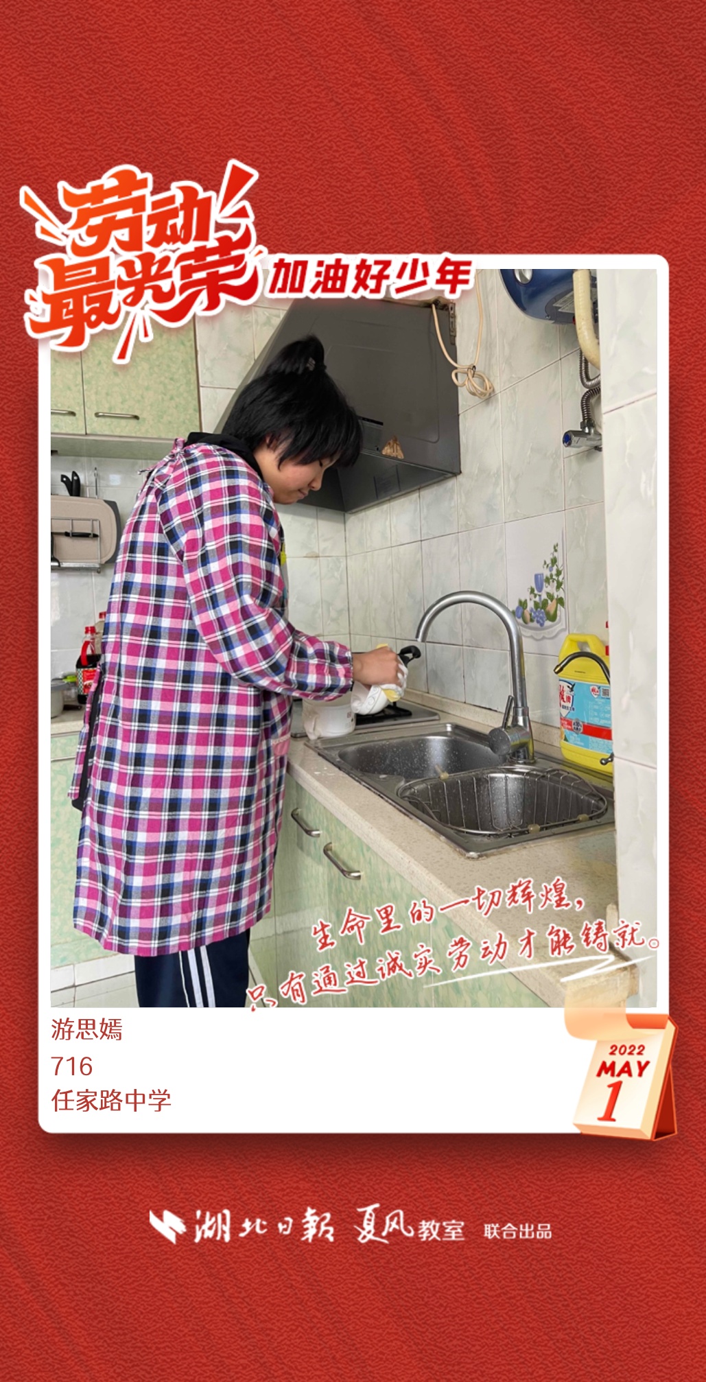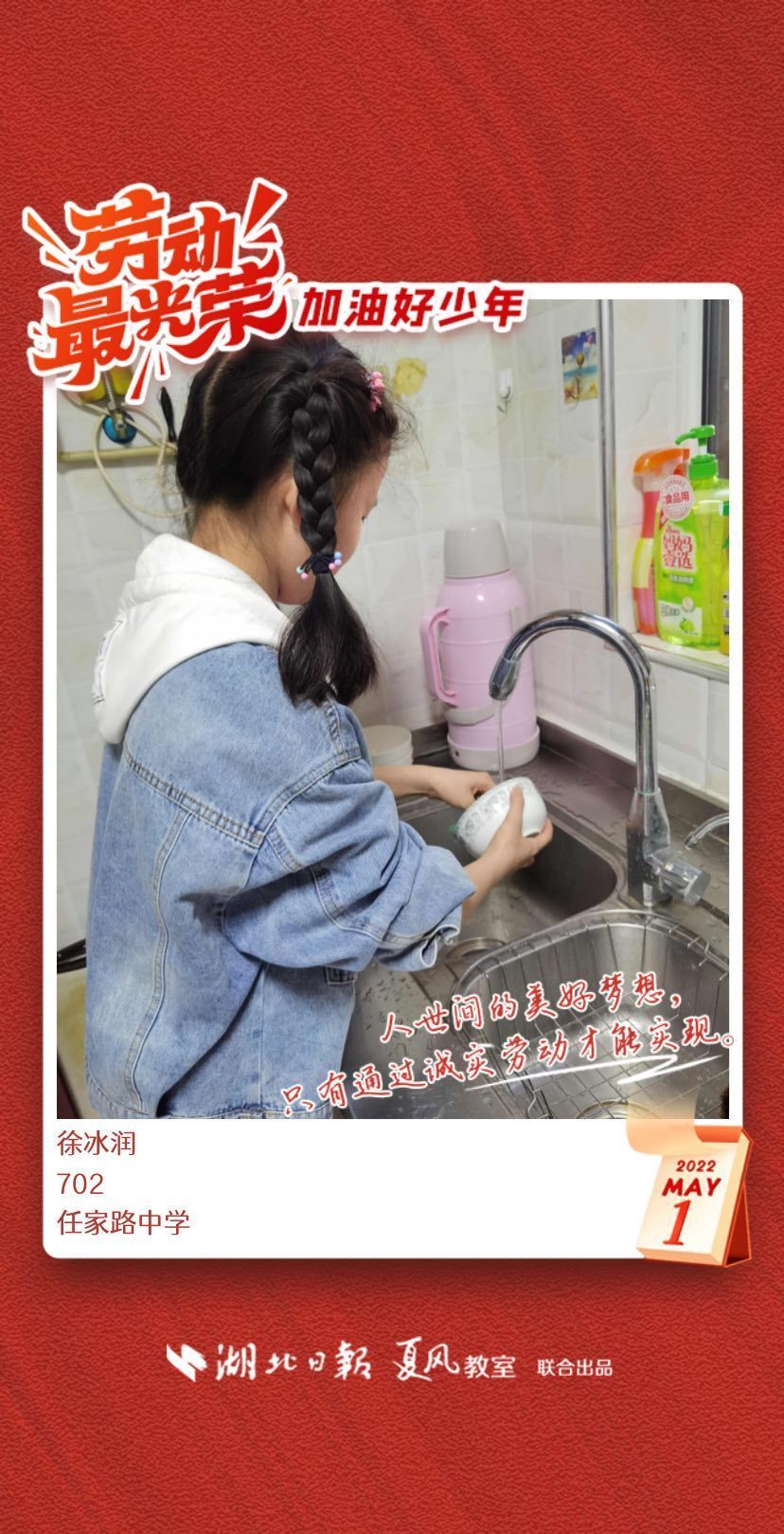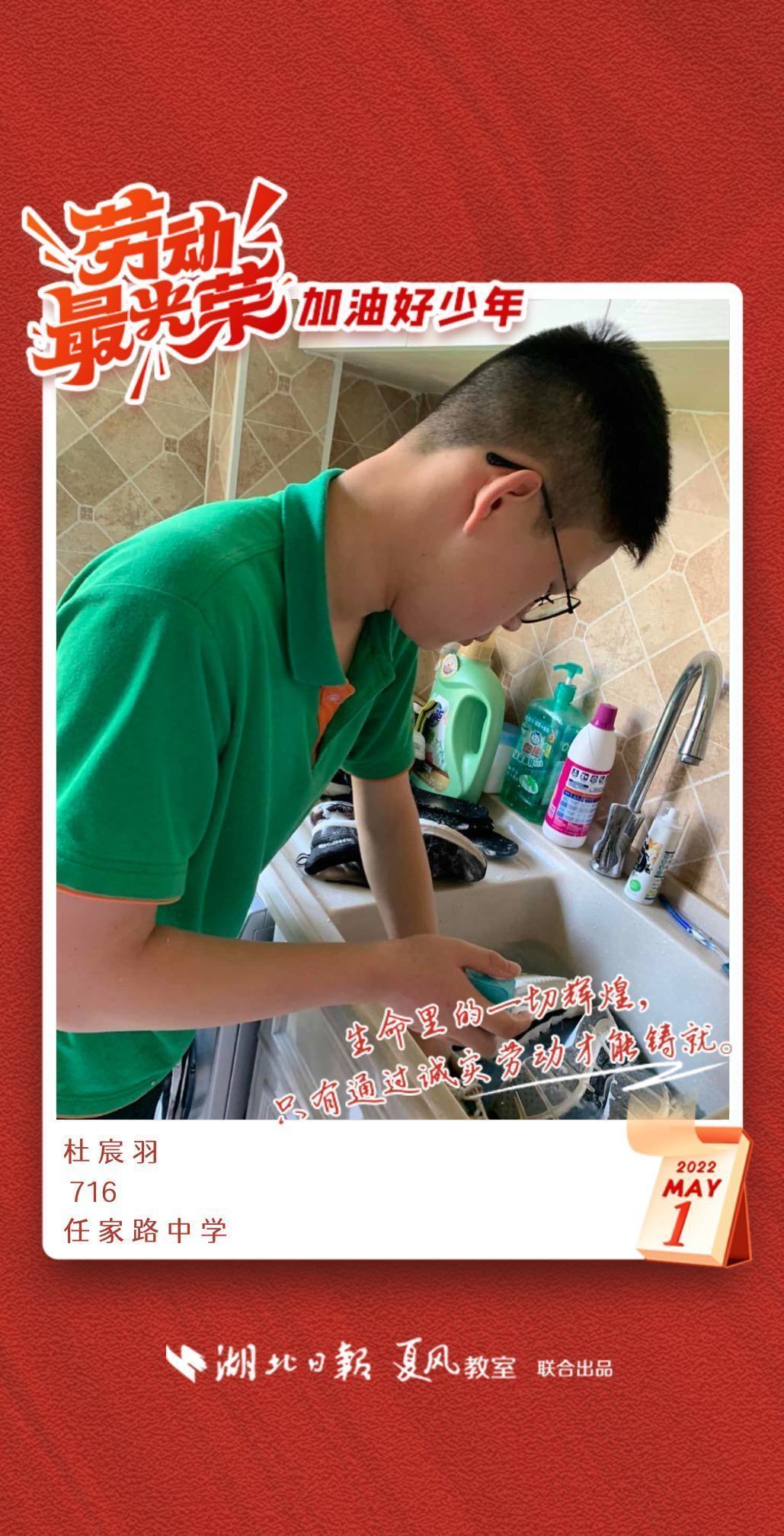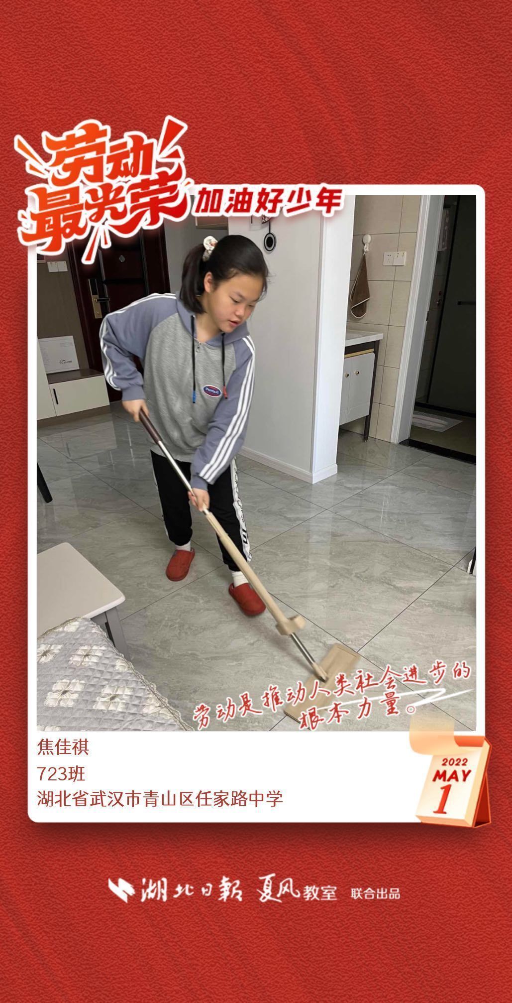 以下是来自武汉市任家路中学的孩子们晒出的劳动海报,为他们点个赞吧!