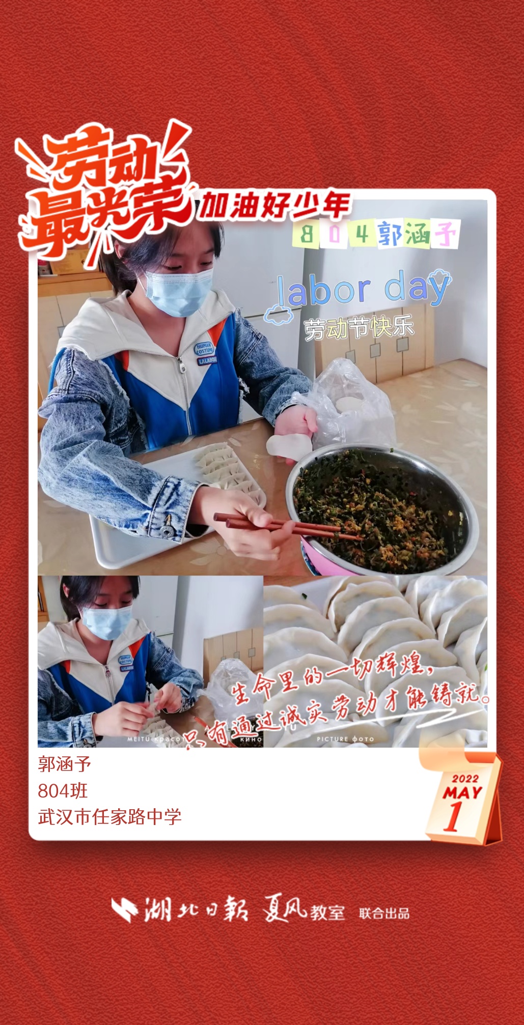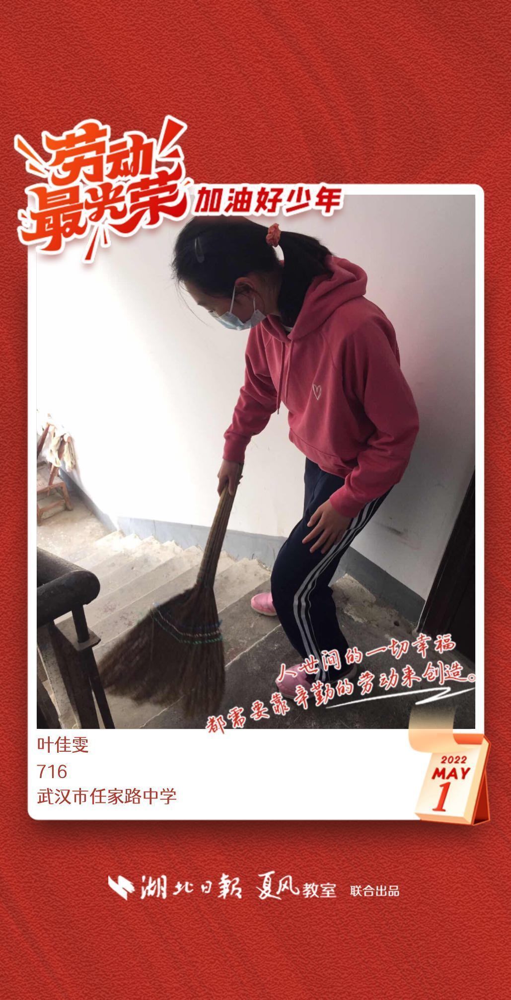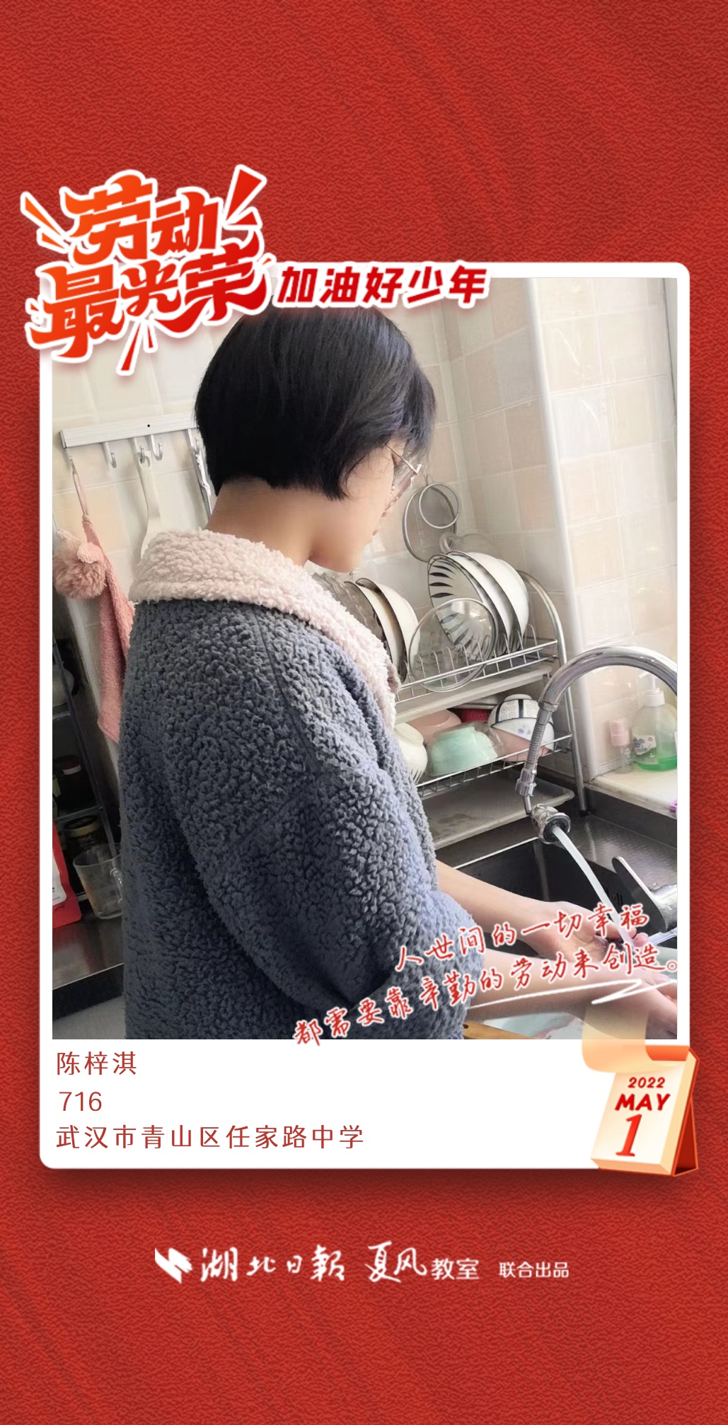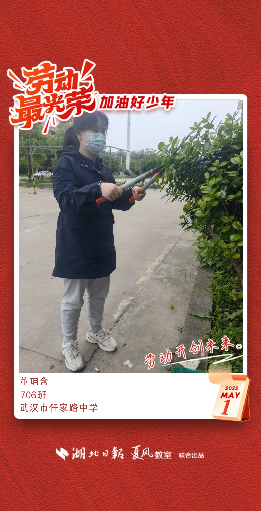以下是来自武汉市任家路中学的孩子们晒出的劳动海报,为他们点个赞吧!