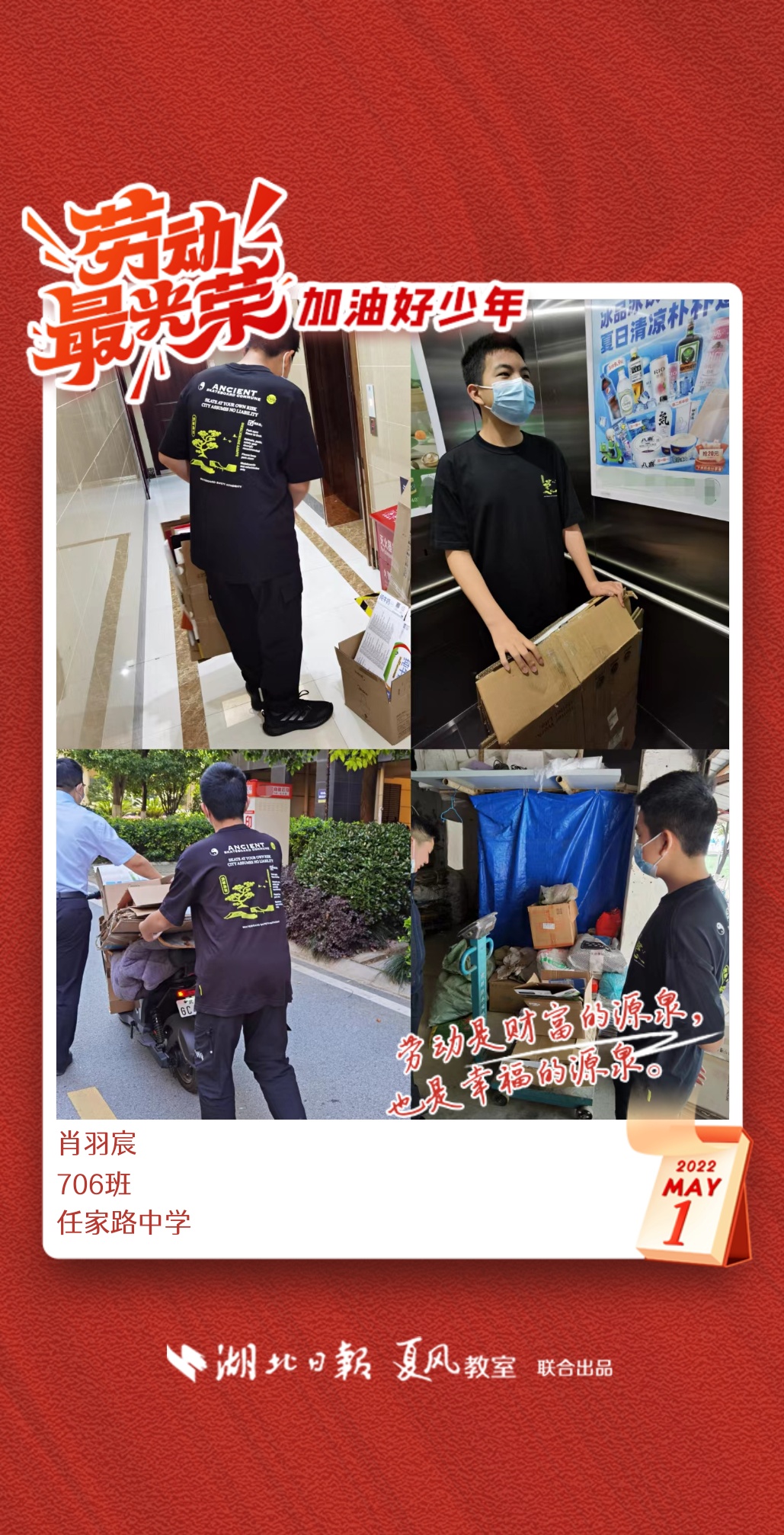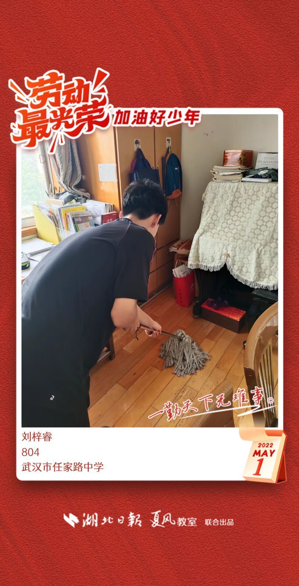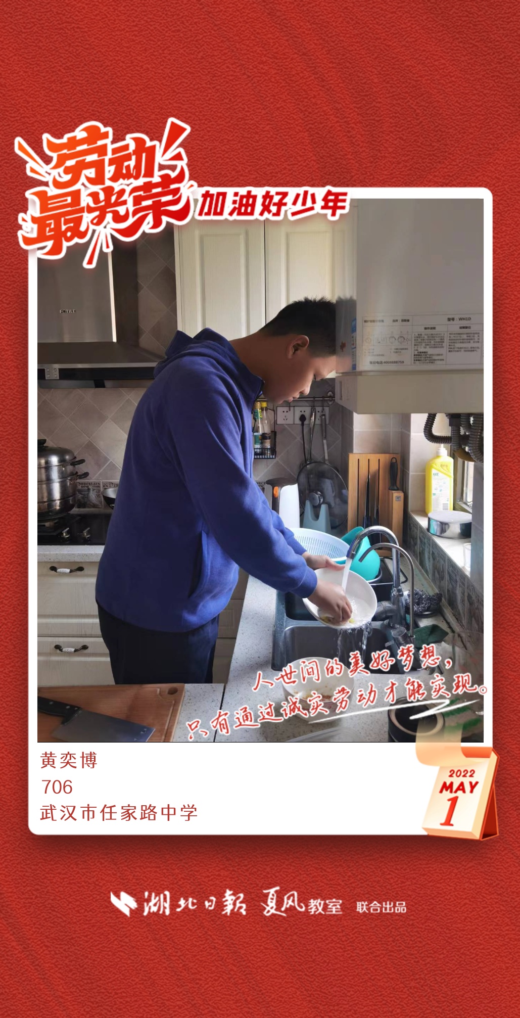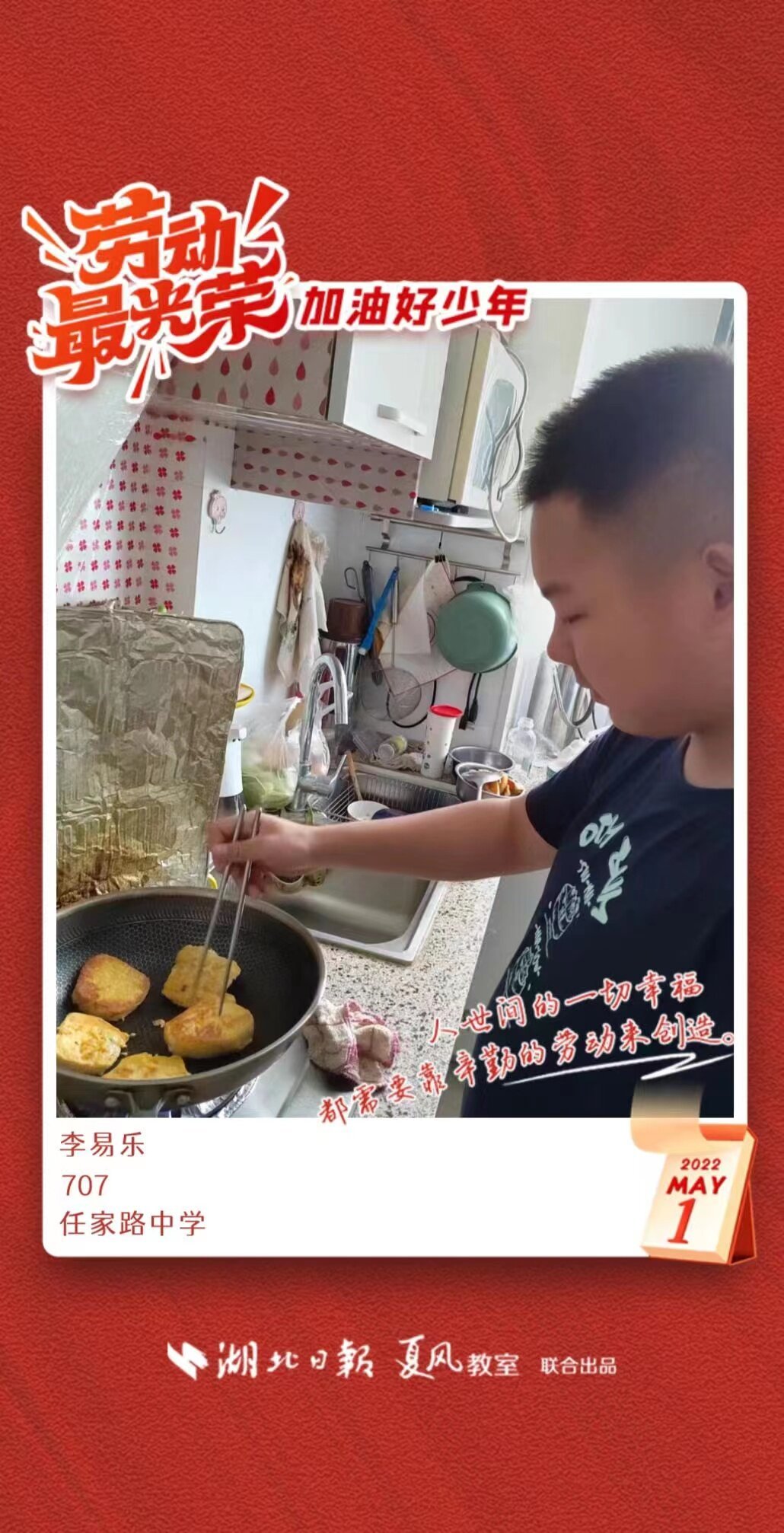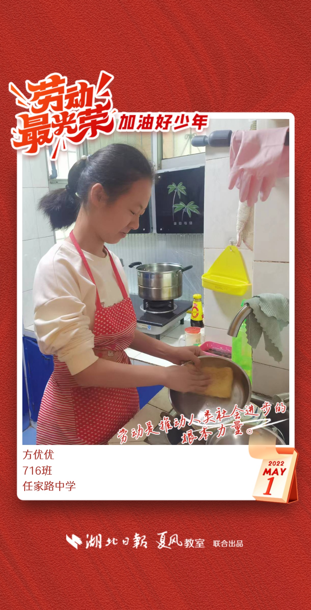 以下是来自武汉市任家路中学的孩子们晒出的劳动海报,为他们点个赞吧!