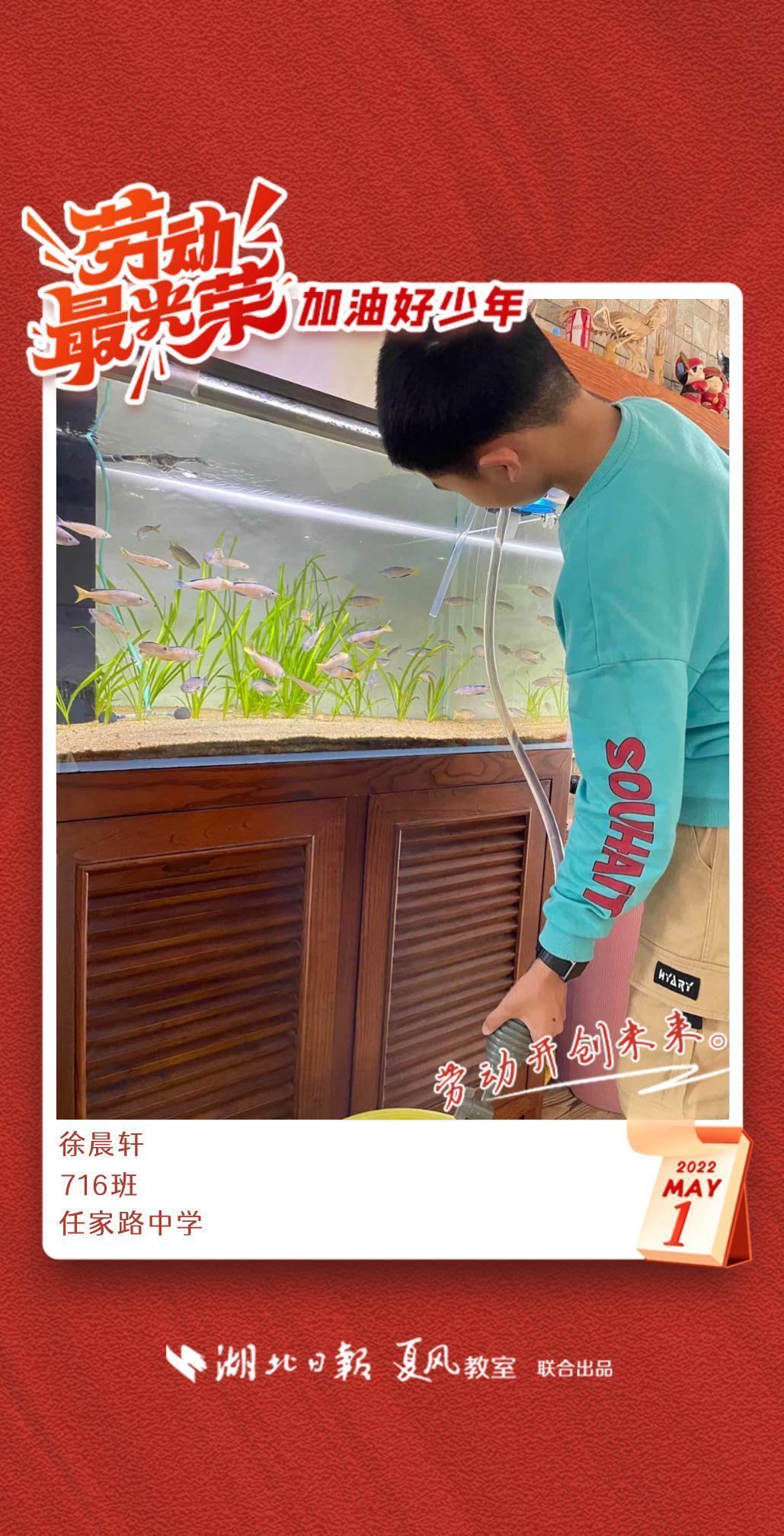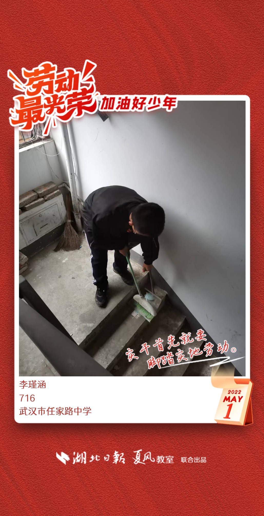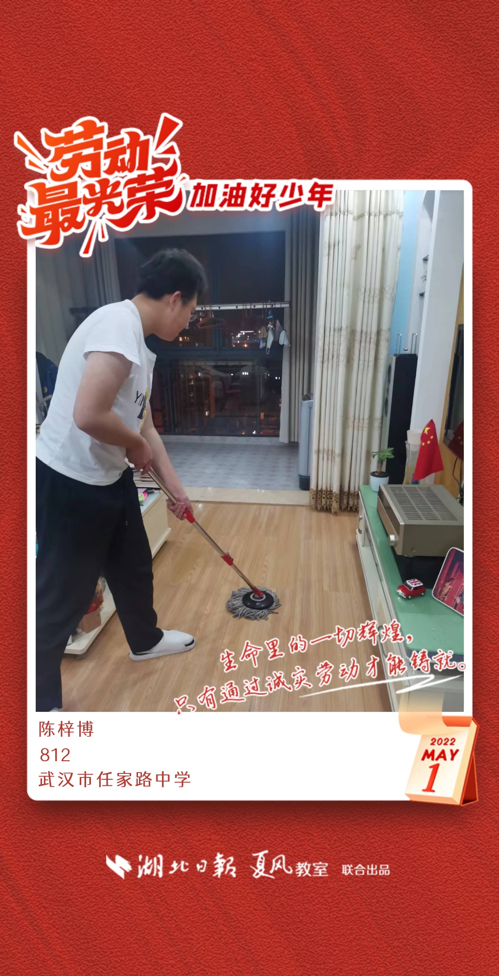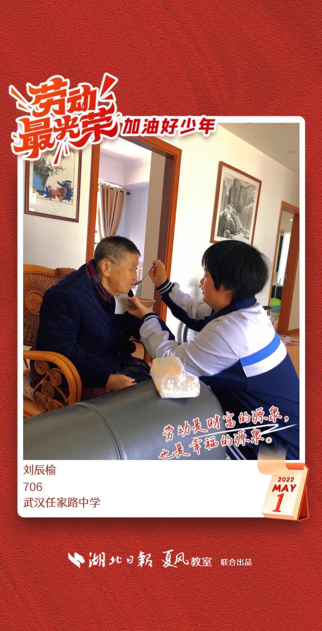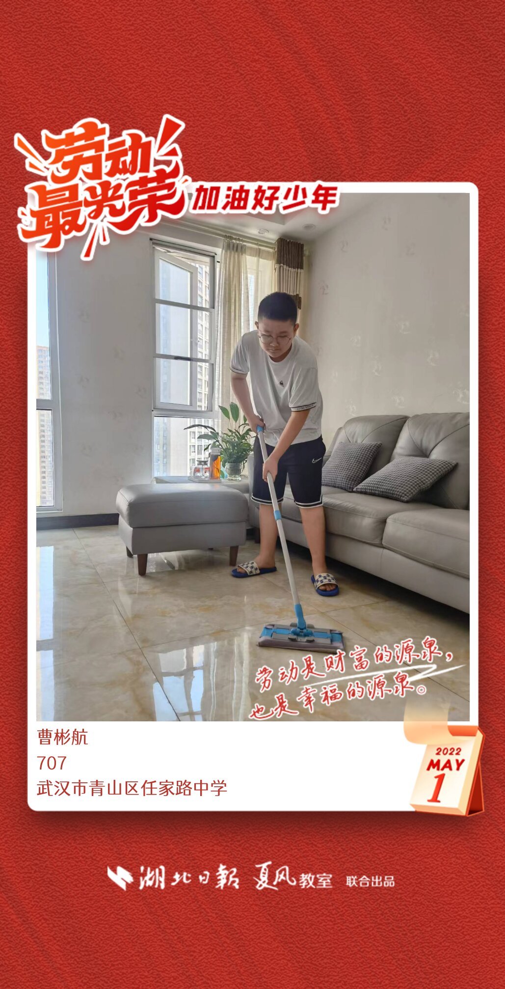 以下是来自武汉市任家路中学的孩子们晒出的劳动海报,为他们点个赞吧!