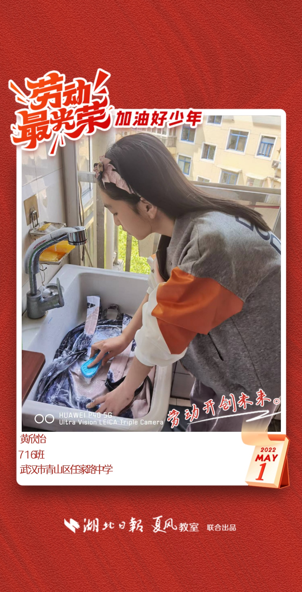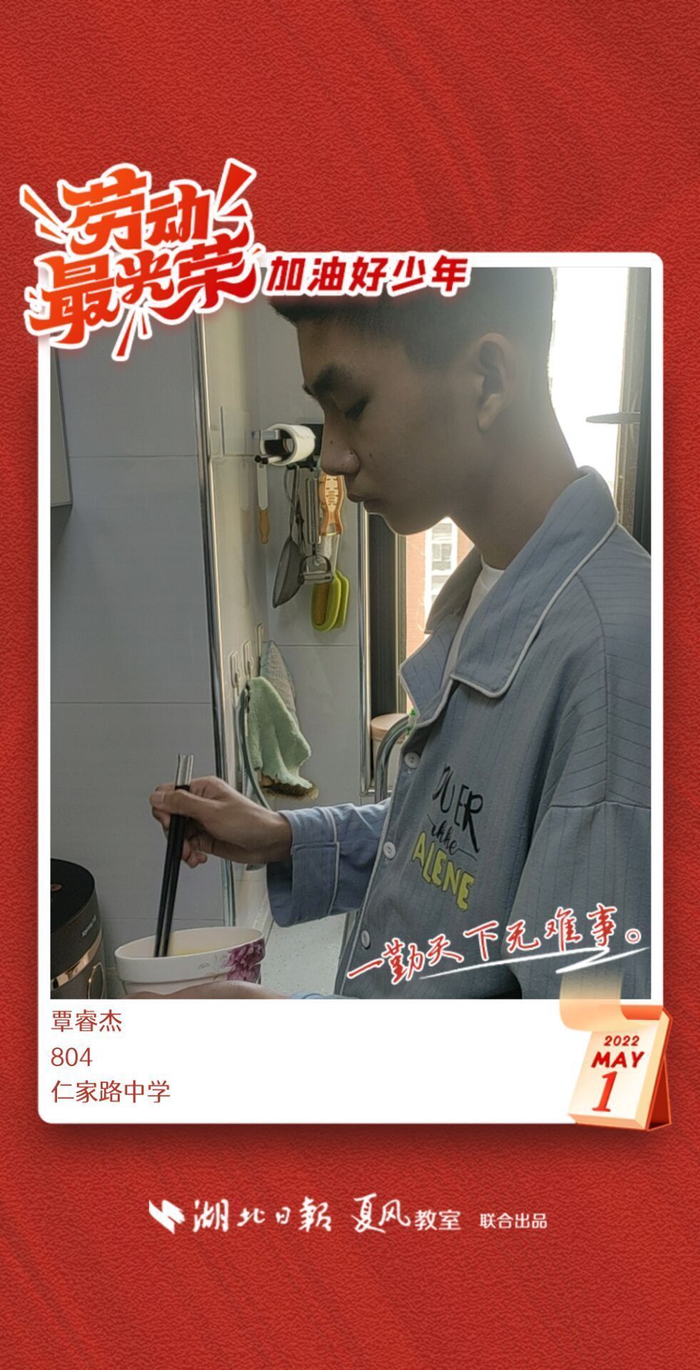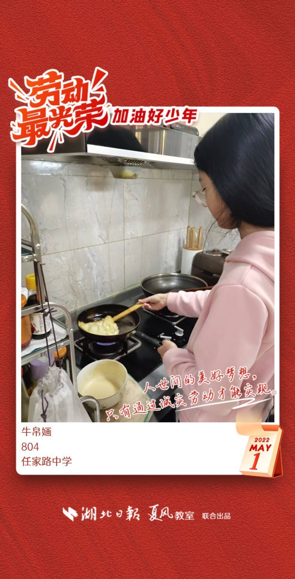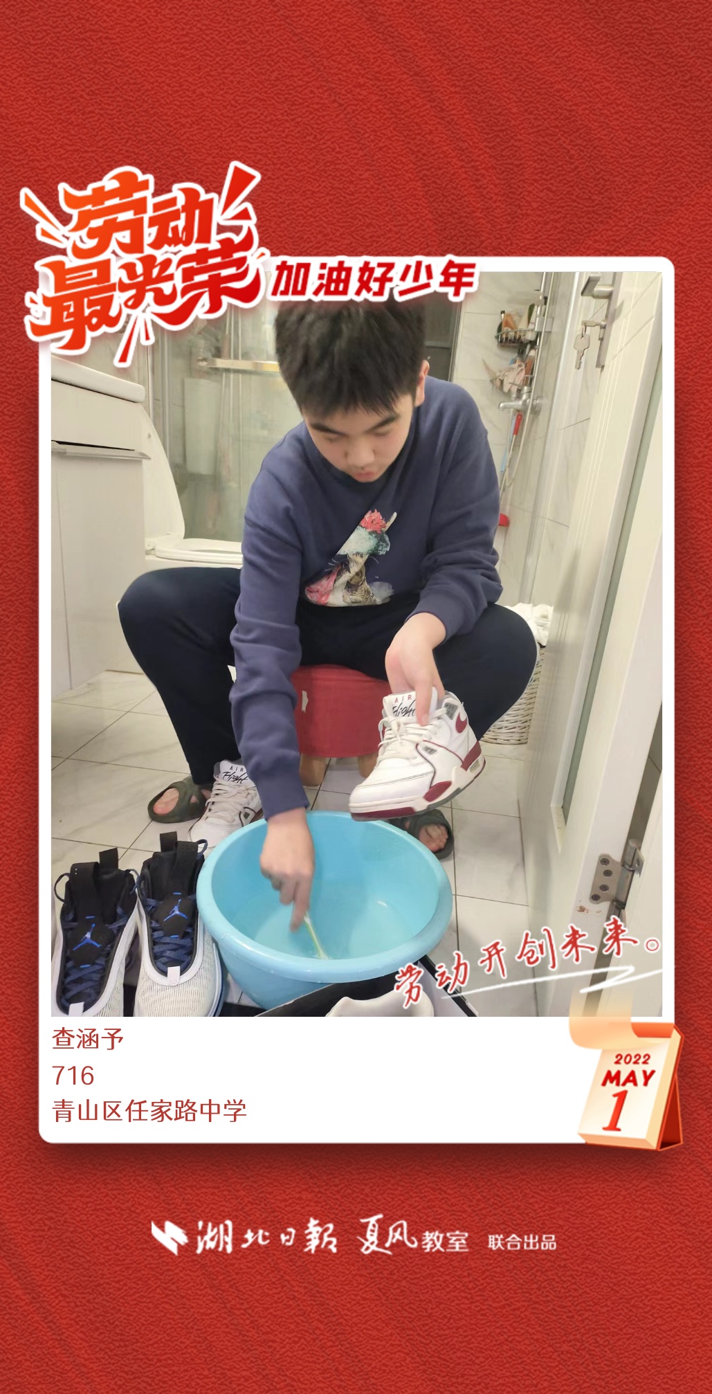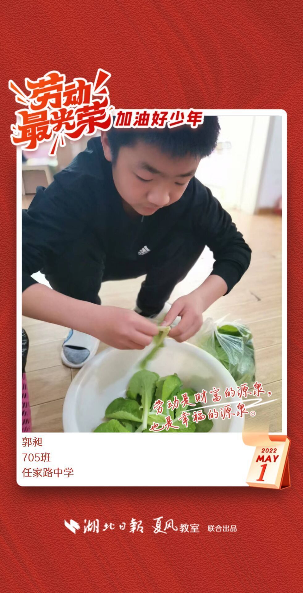 劳动是生活的基础,也是幸福的源泉。在“五一”劳动节来临之际,武汉市任家路中学号召学生自主选择一种劳动方式,完成“一份特别的劳动节作业”。