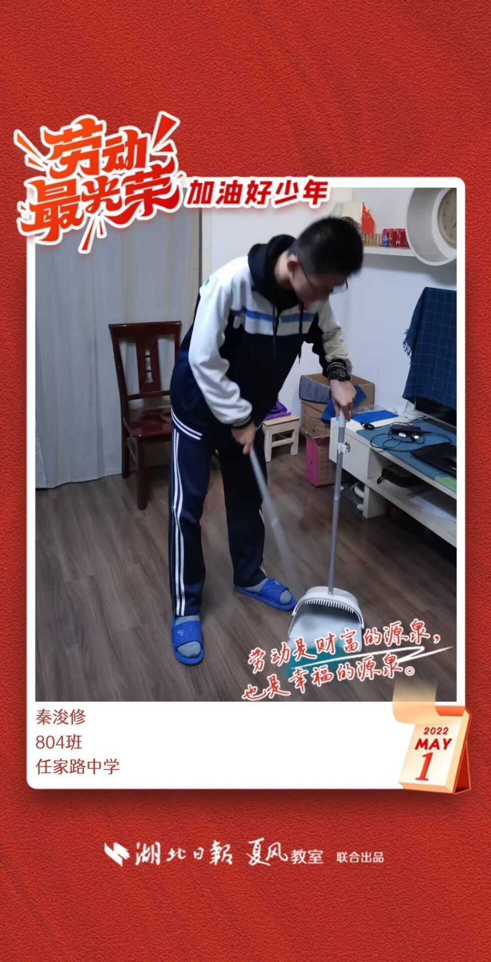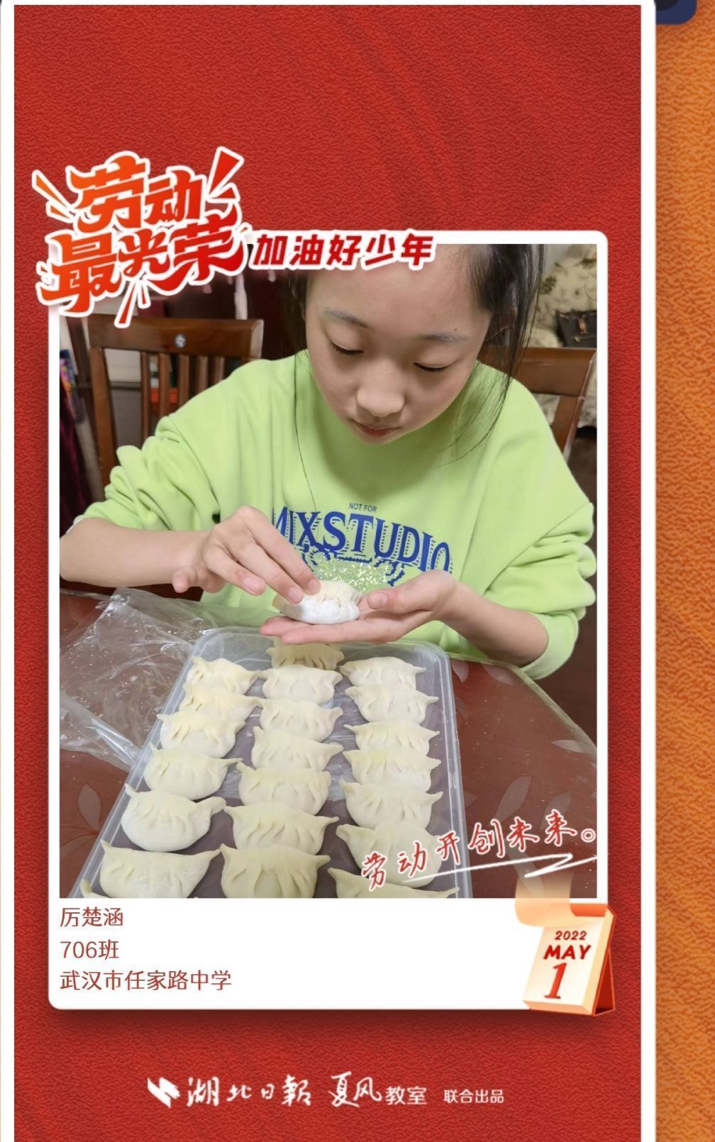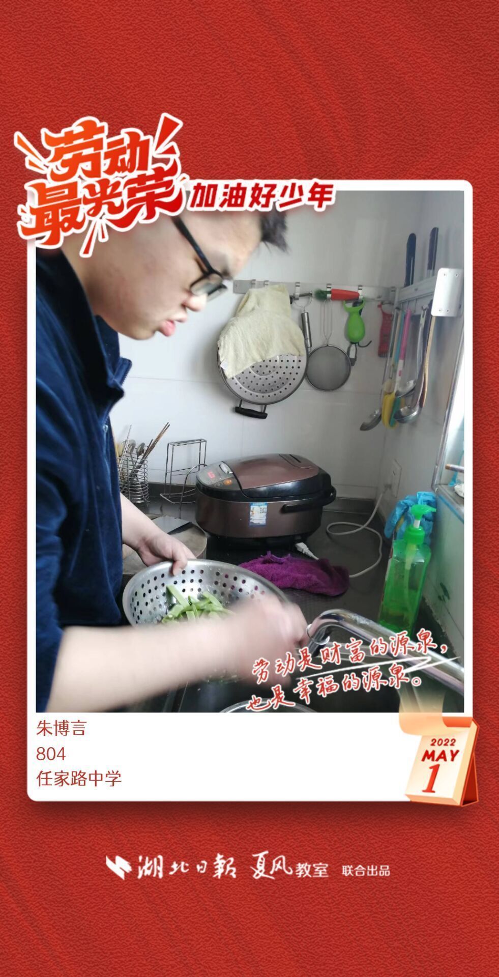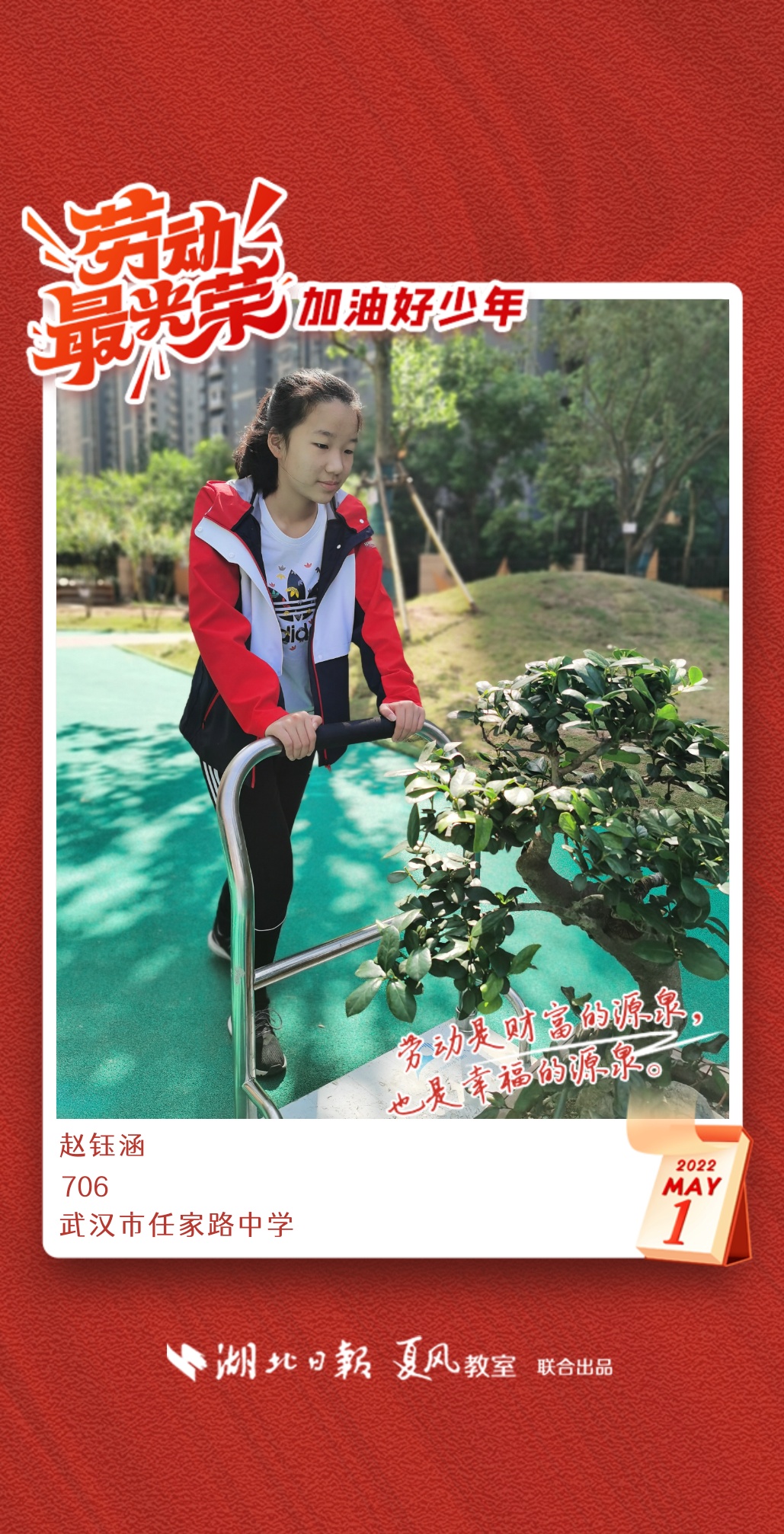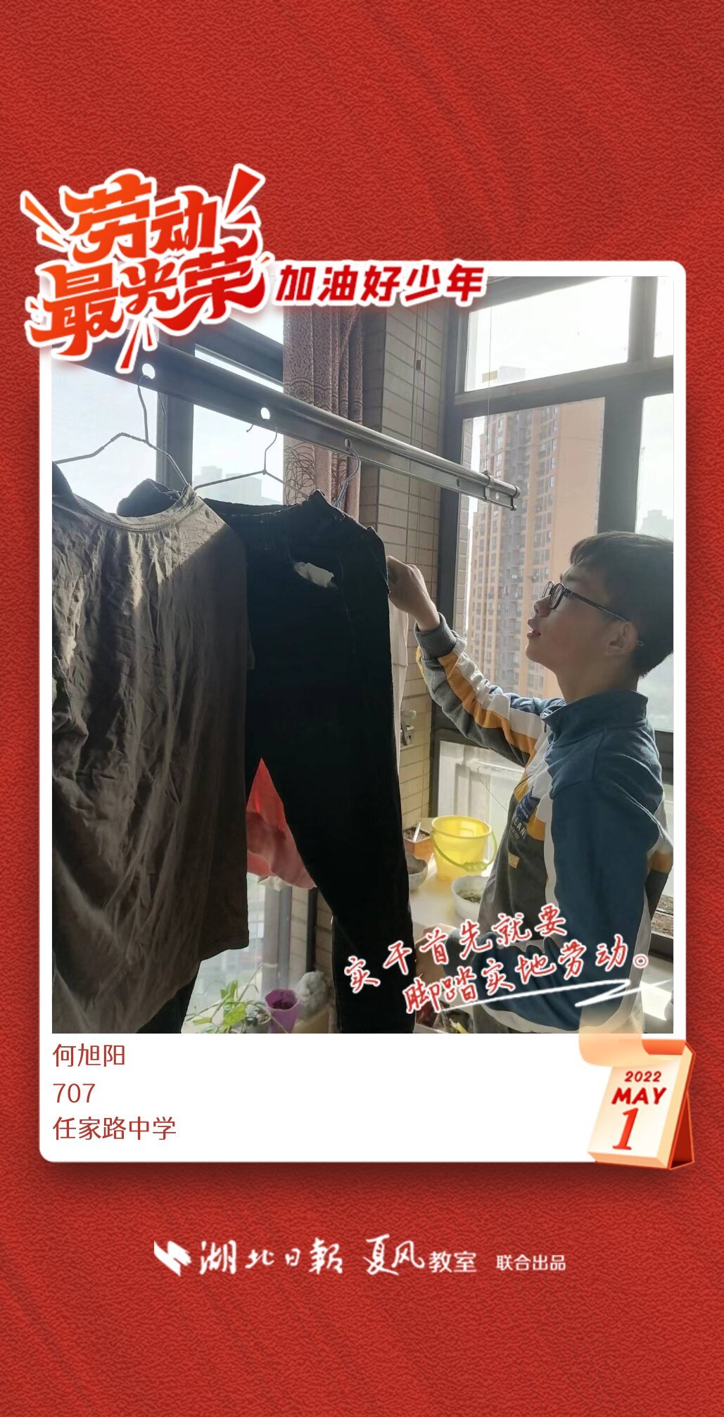 劳动是生活的基础,也是幸福的源泉。在“五一”劳动节来临之际,武汉市任家路中学号召学生自主选择一种劳动方式,完成“一份特别的劳动节作业”。