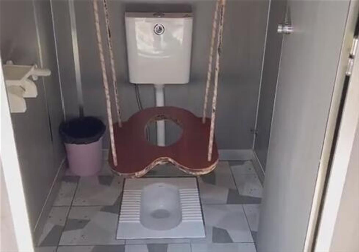 网友拍摄的视频显示,景区公厕区域的一个单独隔间里,蹲坑上有个秋千,秋千坐板上有个洞,坐板还安装了四根绳子。对于这个厕所,有网友担心,如此如厕恐怕会造成自由飞“翔”的效果。网友还表示,设计这个的不是一般人,很好奇这是女厕还是男厕……