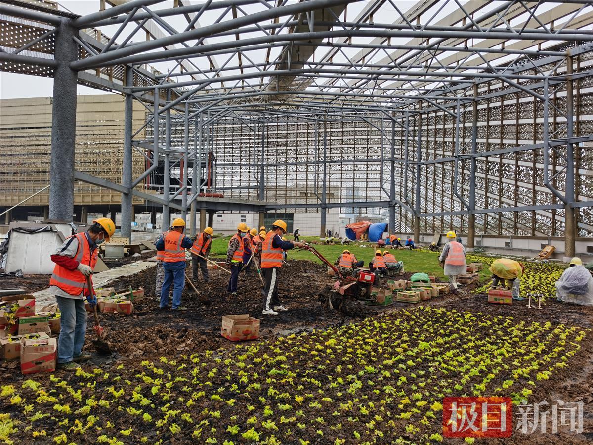 负责3.2万平屋面园林景观铺装及60万株灌木种植的施工员余功波说,项目正处于施工最后冲刺阶段,室外园林景观进行大面积铺装,必须在施工一线站好岗,守好责,确保节点不延误。