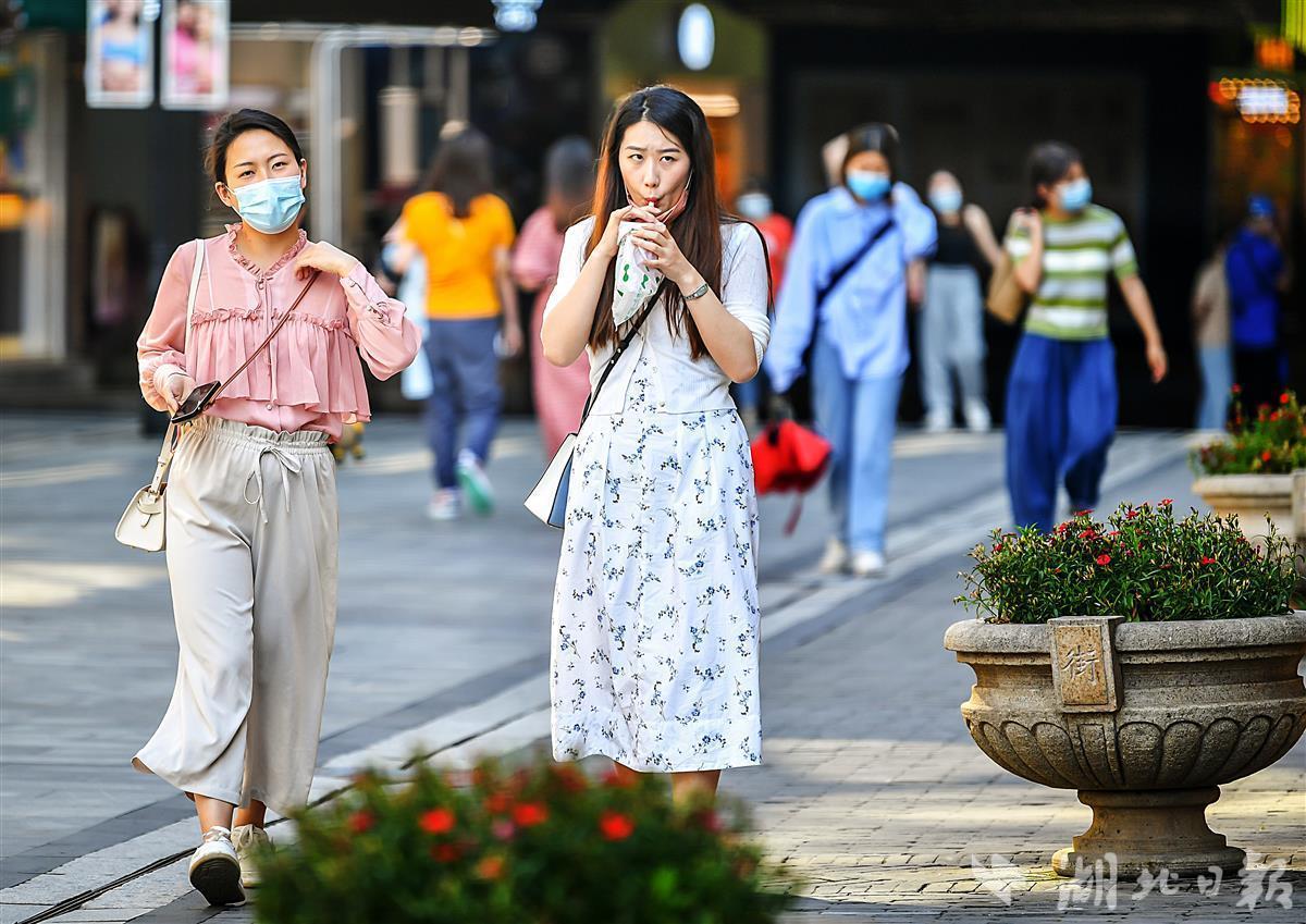 5月5日,迎来立夏节气。据武汉气象台消息,今日天晴,最高气温可达31°C。武汉告别春天,拥抱夏天,街上的冷饮店火,市民都已换上了夏装。(湖北日报全媒记者 朱熙勇 摄)