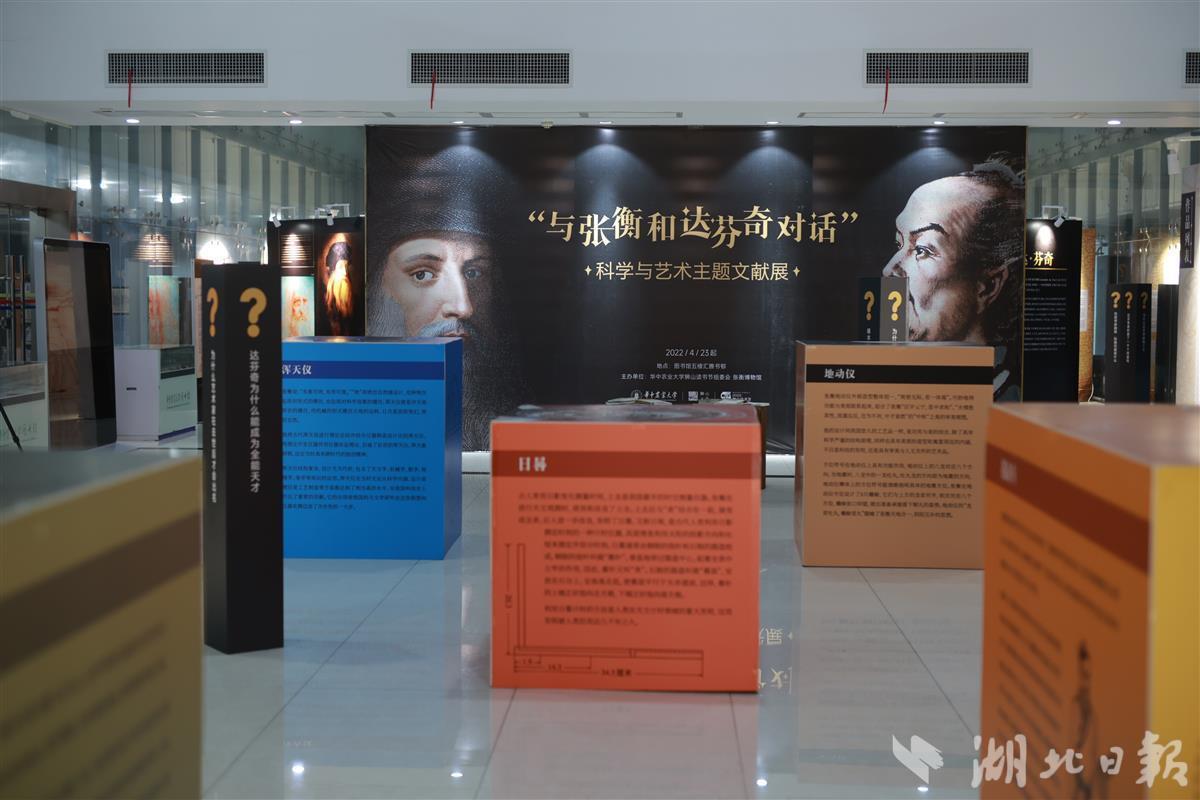 “与张衡和达·芬奇对话”科学与艺术主题文献展由华中农大与张衡博物馆联合策划举办,自4月23日开展以来,吸引了不少师生前往观展。该展览用原著展示、文献复制、空间设计等方式,以图书、文献摘录、模型实物、艺术装置等媒介为观众提供沉浸式体验。