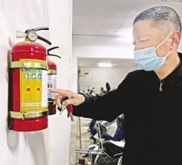 夏望春正在检查车棚的消防设施。