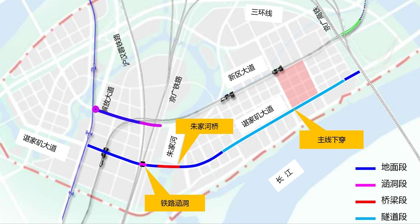 不破坏谌家矶大道沿途风光,地下隧道平叠交替