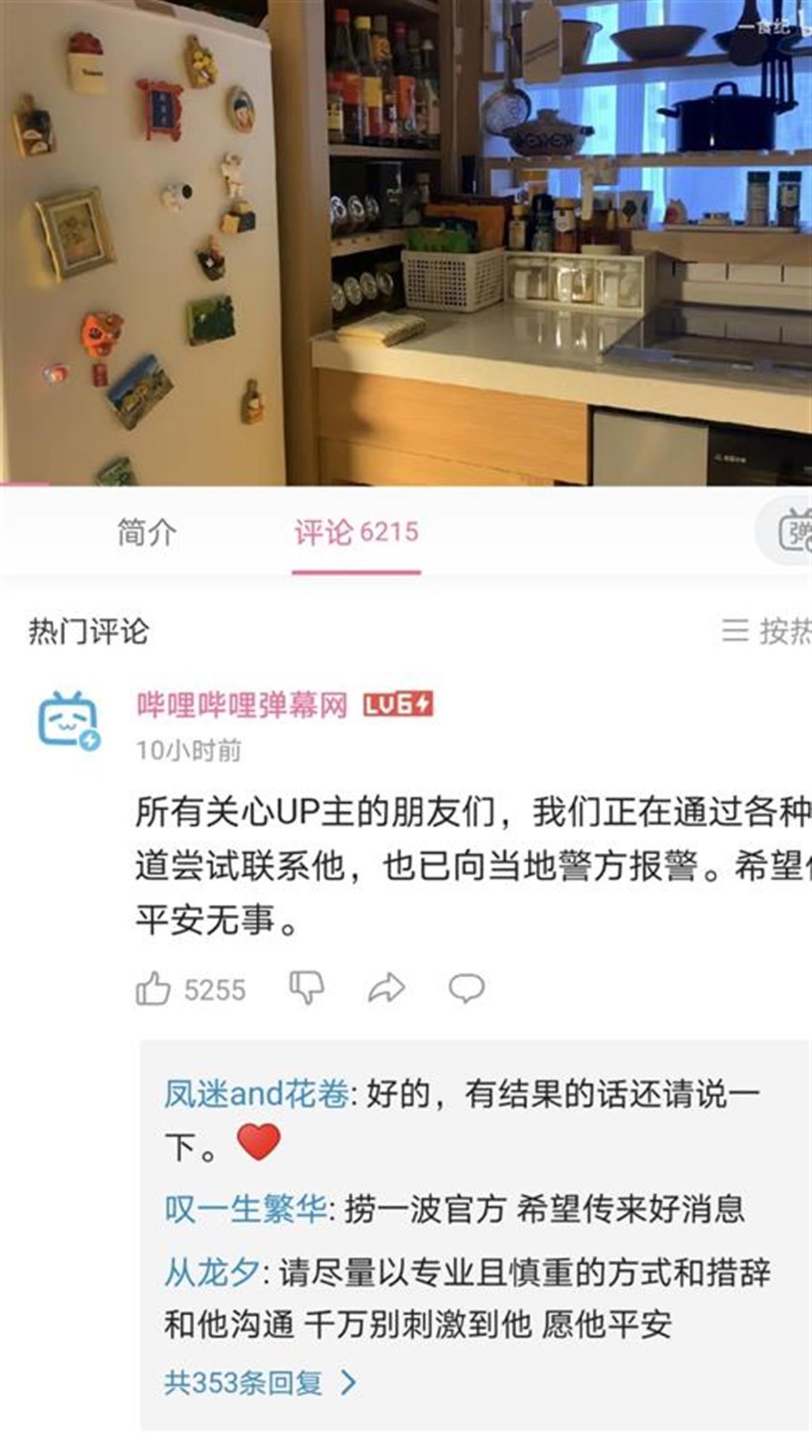 6日凌晨,B站弹幕网官方账号在“一食纪”发布的该条视频评论区表示,他们也已经通过各种渠道尝试联系本人,并向当地警方报警。