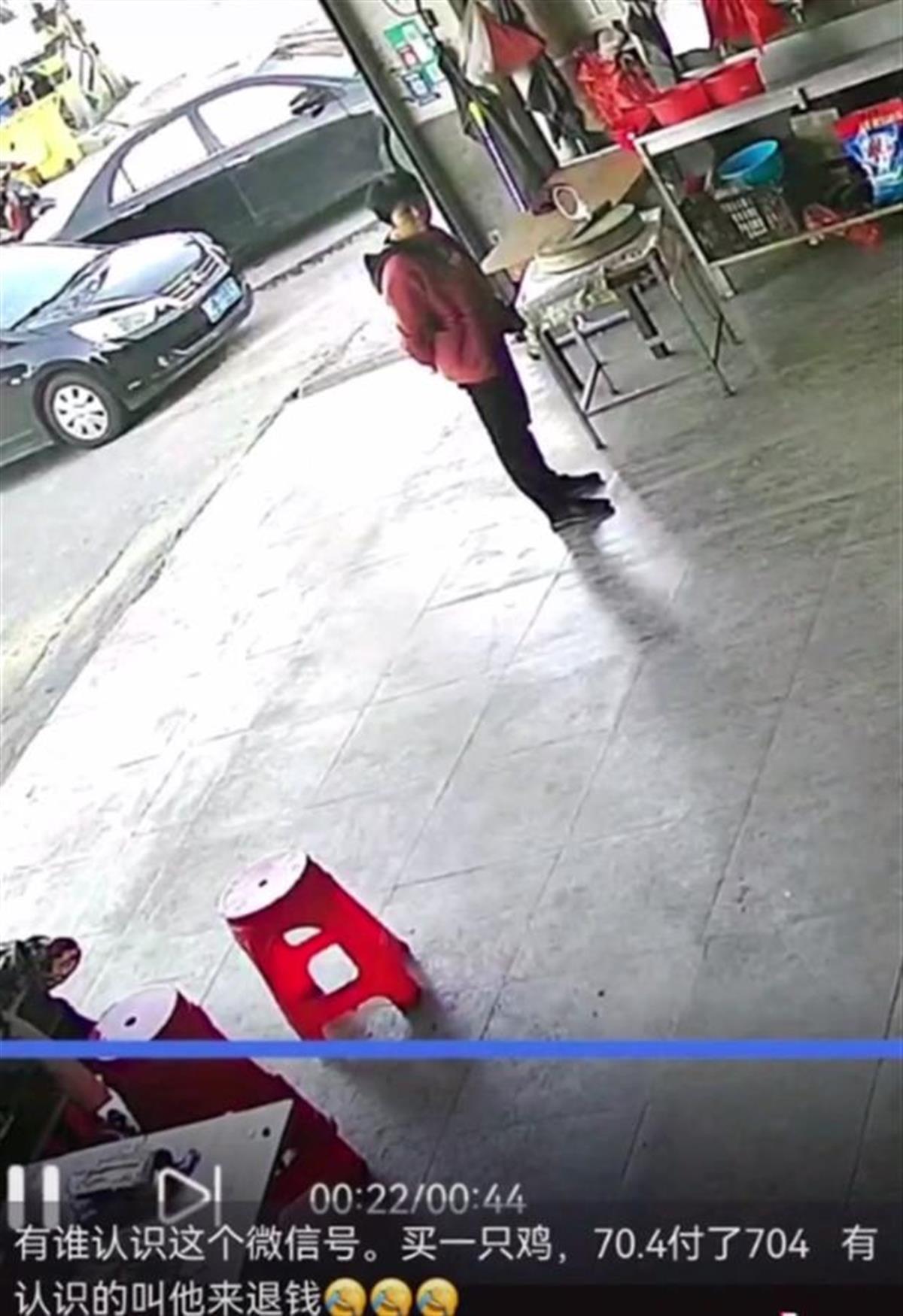 5月5日,福建泉州德化县浔中路一家禽店老板在社交平台发布了一则“寻人启事”,称有一位婆婆顾客购买一只鸡,应付70.4元,结果实际付了704元,希望有人看到后能通知这位顾客前来退钱。
