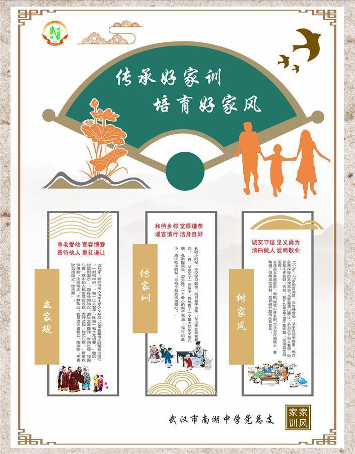武汉市南湖中学结合“讲好南中家风故事”活动推进该项目建设。据介绍,该校4月支部主题党日开展了清廉学校文化创建活动,近50位党员教师将自家家风家训“晒”上墙。