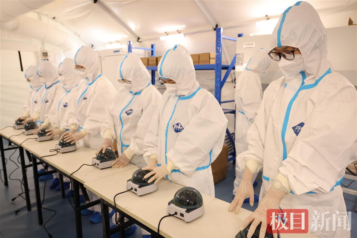 襄阳气膜实验室暂由襄阳市中心医院代管。该医院医务处副主任曹波介绍,6个舱区日检测量最高可达10万管,按10混1采样方式,每日可完成超100万人份的核酸检测任务,从样本接收到出结果最快4个小时。