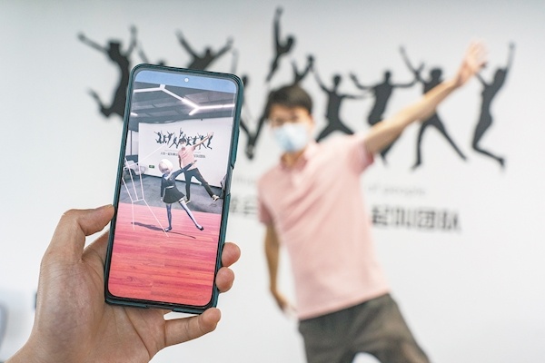5月6日,光谷未来科技城,武汉TCL工业研究院研究人员通过手机端设备不断与虚拟数字人互动健身。该研究院研发了基于AI驱动及真人驱动的虚拟数字人技术,截至目前,7项发明专利已授权,5项PCT及350余项发明专利申请已获受理。