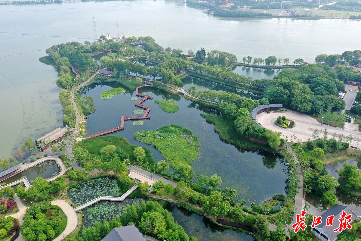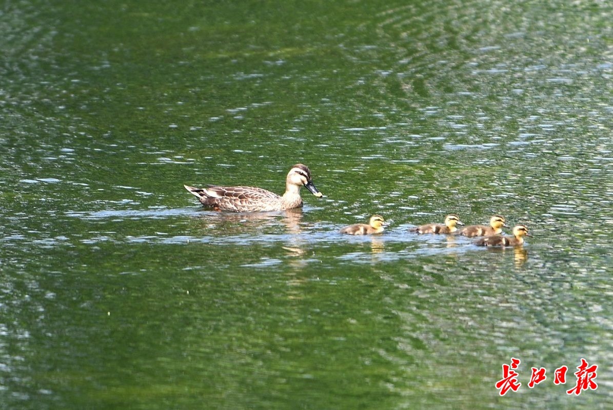 长江日报大武汉客户端5月8日讯 5月8日,金银湖国家城市湿地公园,水清草绿,鱼翔浅底,野鸭成群。前来休闲健身的市民尽情享受着“城市绿肺”带来的天然氧吧。