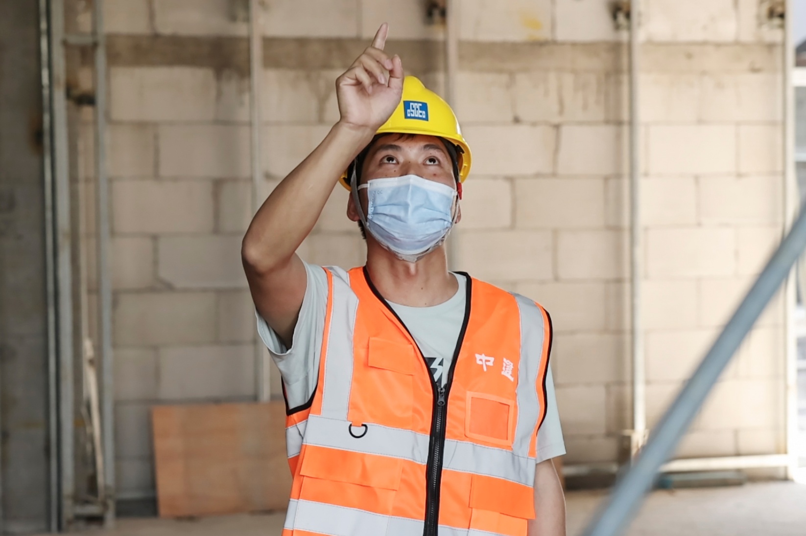 协和医院质子中心项目安全员陈正微笑宣言:“做好安全工作,为美好生活保驾护航。”