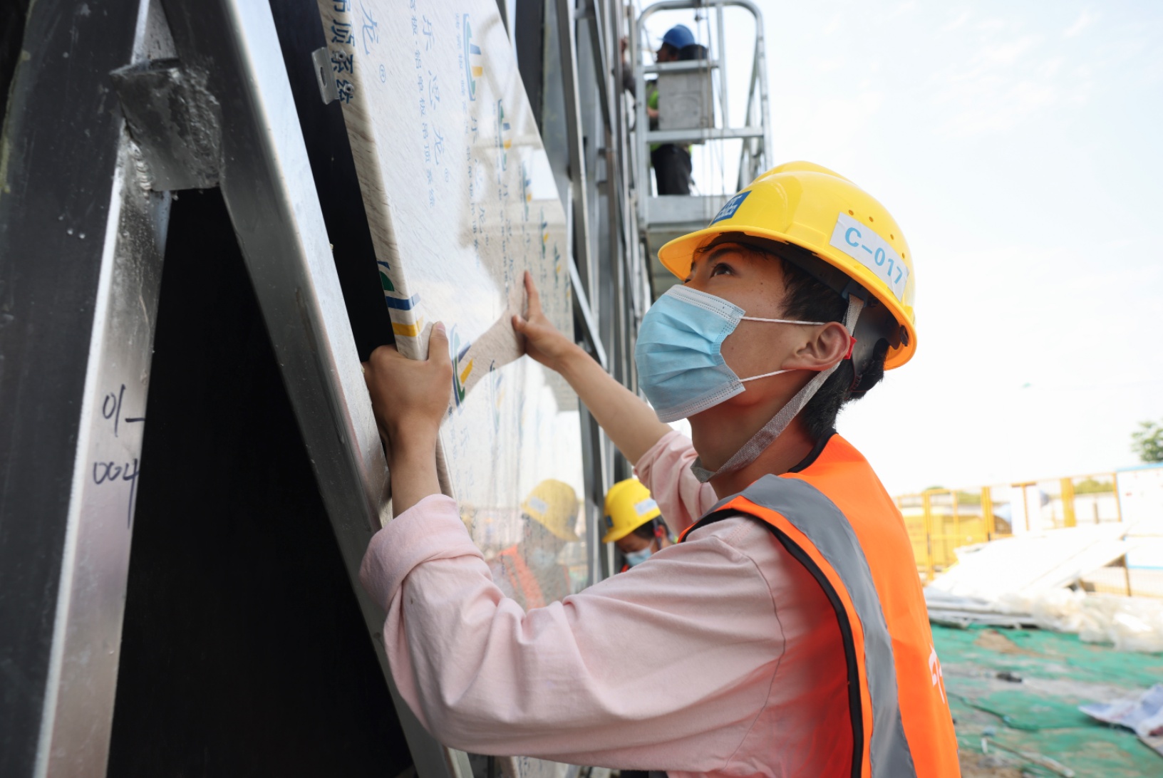 协和医院质子中心项目00后幕墙工人王舜微笑宣言:“努力工作,创造美好未来。”