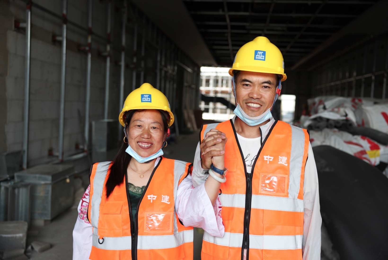 协和医院质子中心项目幕墙工人夫妻王维现、李瑞菊微笑宣言:“幸福是奋斗出来的,加油!”