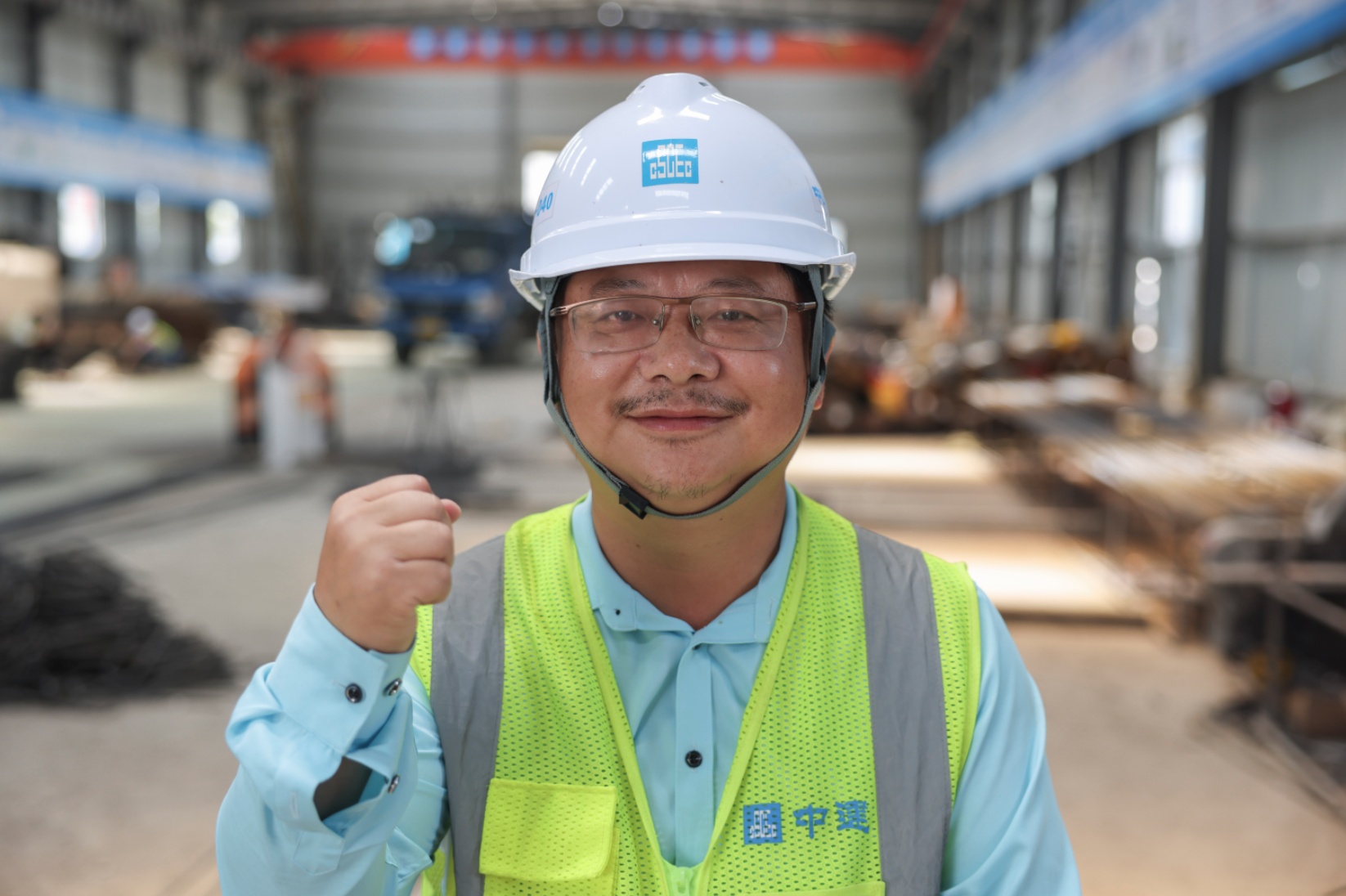 十路一桥项目生产经理周佑(中)进微笑宣言:“幸福生活靠劳动创造,加油!”