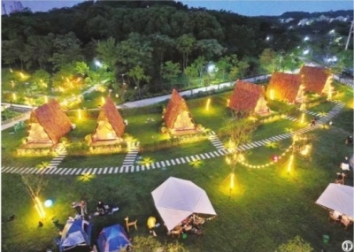 在花博汇景区,满山遍野的绣球花迎来初花期,绣球花下的田园小憩露营基地在7日晚上预定一空;夜幕降临,在氛围感满满的天幕帐篷下,暖黄色的星星灯亮起,烤肉啤酒配超燃超嗨的乐队现场演出,有烟火气的精致露营,成为开启美好夏日的最优解。花博汇相关负责人介绍,随着夏日来临,露营基地计划在周末的晚上,将夜晚的夏日音乐会常态化,还会上新星空电影。