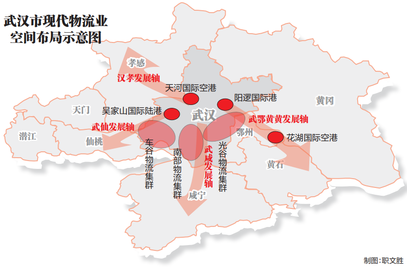 《规划》提出,要充分发挥武汉在国家新发展格局中的战略节点作用,强化区域集散流通能力,规划形成“四港四轴三集群”的物流空间布局体系。