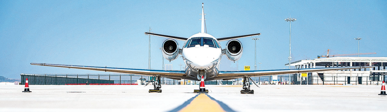 2021年12月29日,校飞飞机停在湖北鄂州花湖机场停机坪上。当日,一架赛斯纳560校飞飞机在鄂州花湖机场起飞、降落,标志着国内首个专业货运机场建成并启动校验飞行。 新华社记者肖艺九 摄