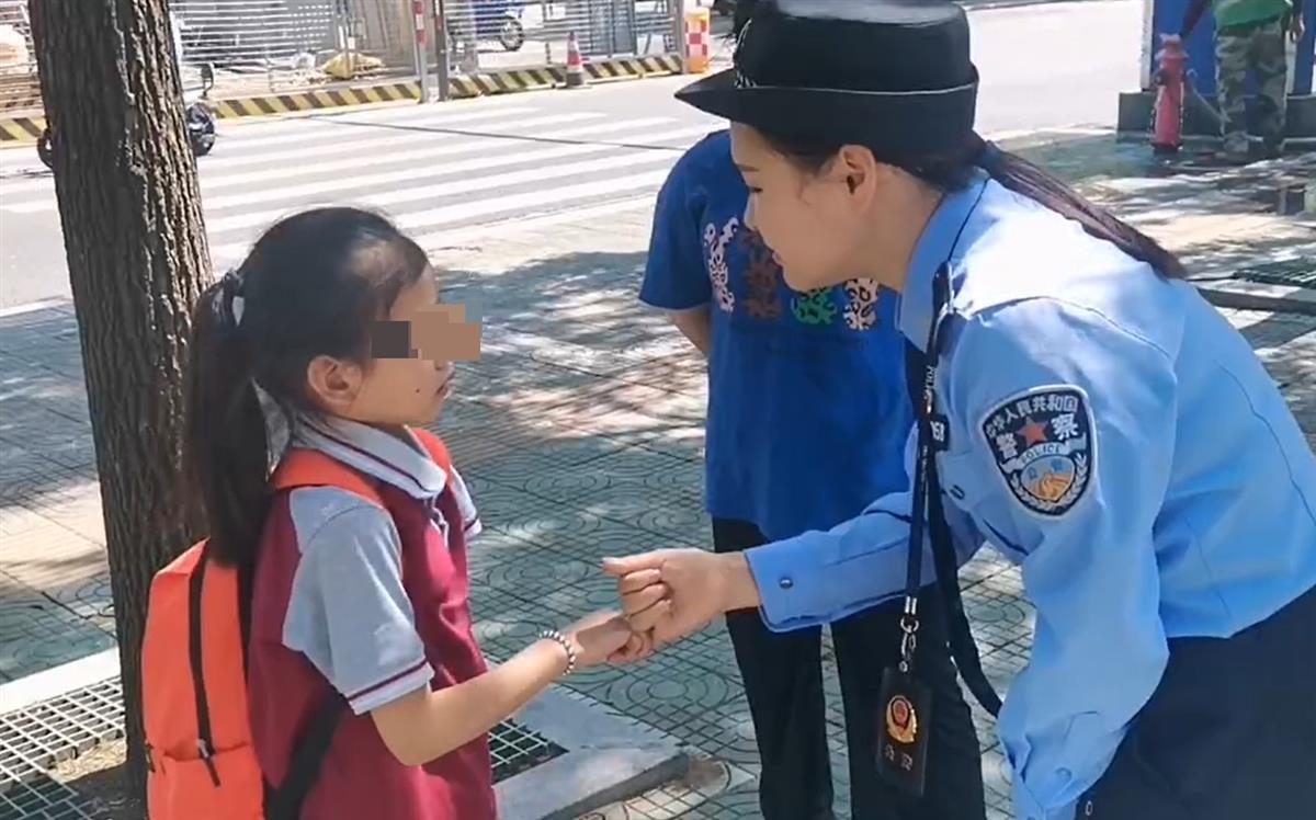 “拉钩保证,不是我的东西绝不动!”5月8日上午,在湖北石首市公安局绣林派出所门口,辅警邹婷和七岁的小学生晓晓(化名)用“手拉钩”形式发出诺言,孩子的妈妈在旁眼睛都湿润了。