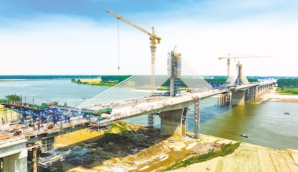 5月7日,投资5.34亿元的潜江汉江大桥正在加紧建设。该桥竣工通车后,将结束潜江境内无汉江大桥的历史,极大方便潜江市、天门市汉江两岸群众出行,有力推动两市经济社会发展。