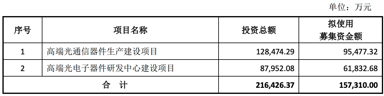 光迅科技于4月28日发布了非公开发行股票预案(三次修订稿)。预案显示,公司非公开发行股票募集资金总额预计不超过15.73亿元(含15.73亿元),在扣除发行费用后实际募集资金净额将用于高端光通信器件生产建设项目和高端光电子器件研发中心建设项目。