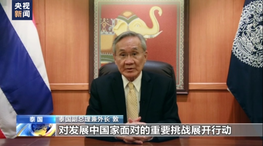 泰国副总理兼外长 敦:现在距离实现2030年可持续发展目标不到10年,当下聚集起来,对发展中国家面对的重要挑战展开行动,达到发展需求,落实可持续发展目标正是时候。