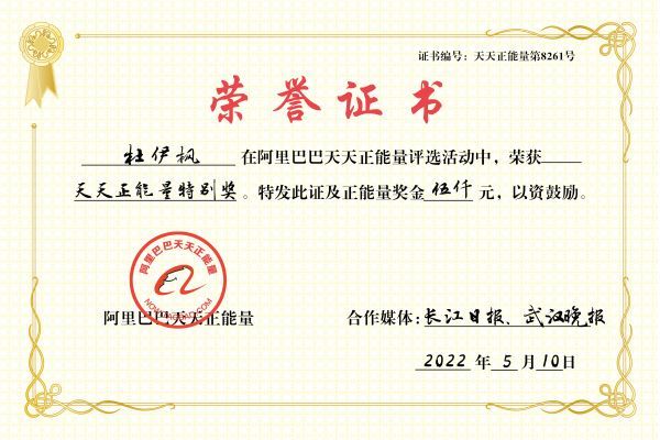 5月10日,阿里巴巴天天正能量联合长江日报、武汉晚报为店主颁发天天正能量特别奖及5000元奖励,向他的正气致敬!