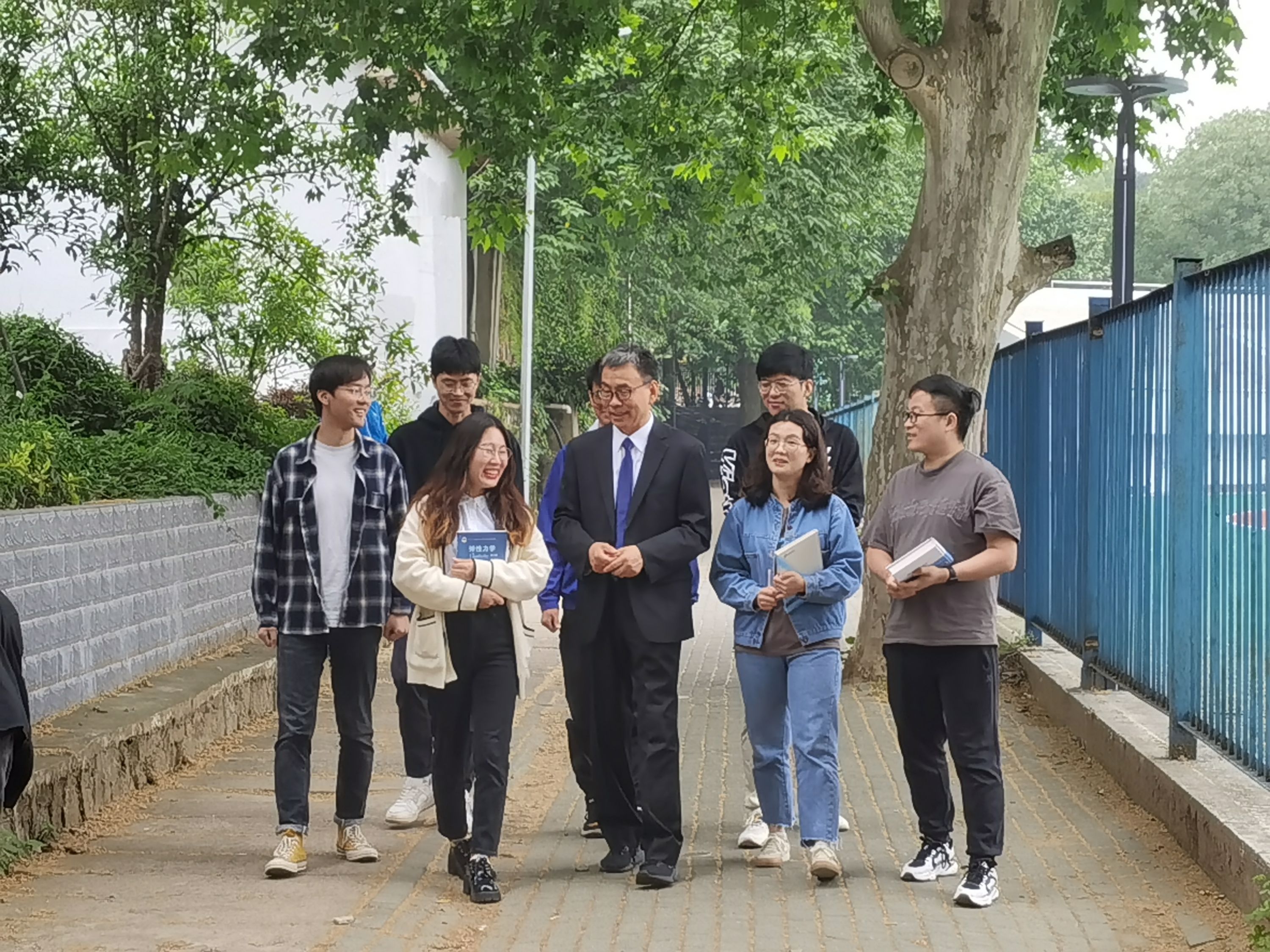 刘胜和学生一起交流。记者郭丽霞 摄