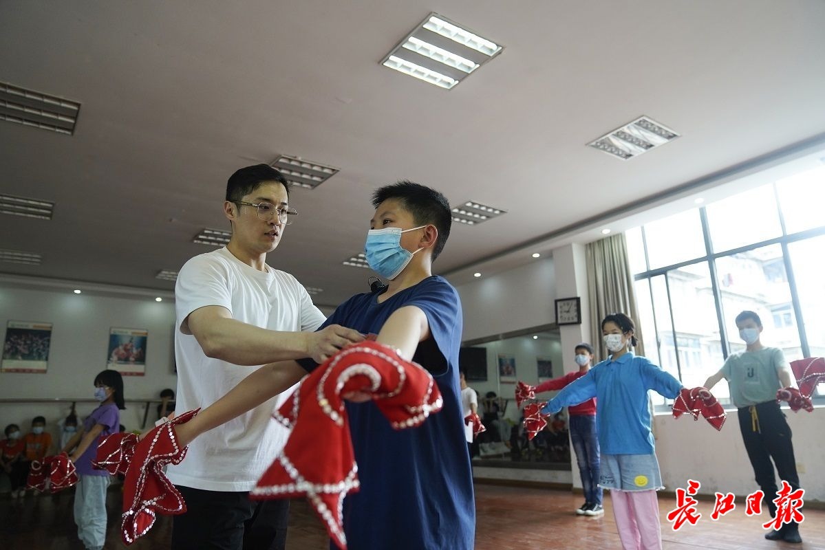 李桢老师在给孩子们上舞蹈课。长江日报记者彭年 摄