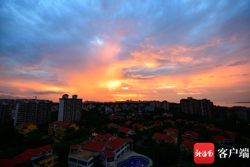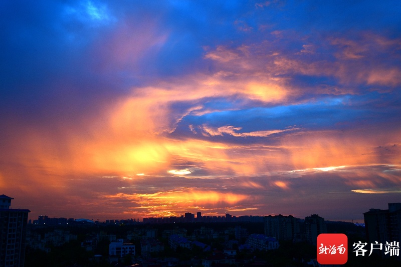 新海南客户端、南海网、南国都市报5月11日消息 (记者 陈卫东)11日傍晚,一阵小雨过后,海口天空出现火烧云景观。
