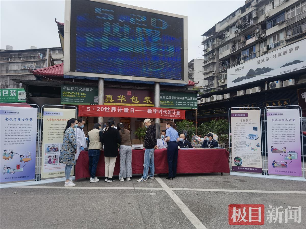 武汉市硚口区的汉口茶市,被誉为中南第一茶市,是全国重点茶叶市场。5月10日,第23个“世界计量日”即将到来,硚口区市场监管局在武汉茶叶市场设置主会场,同步在全区21个农贸市场、12个大型商超开展了计量宣传活动。
