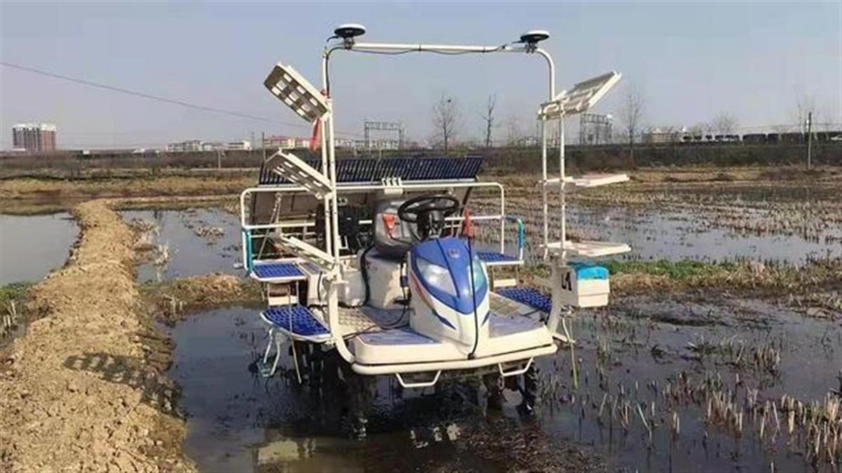 这台无人驾驶水稻插秧机是由东风井关农业机械有限公司生产的。据介绍,只需一人先把秧盘摆好,无人驾驶水稻插秧机此后便会自动迅速插下整齐的秧苗。一台插秧机一天至少可以完成60亩稻田的插秧作业,不仅可以大大降低人工成本,还能实现精细化、精准化和智能化作业,提高水稻亩产经济效益。