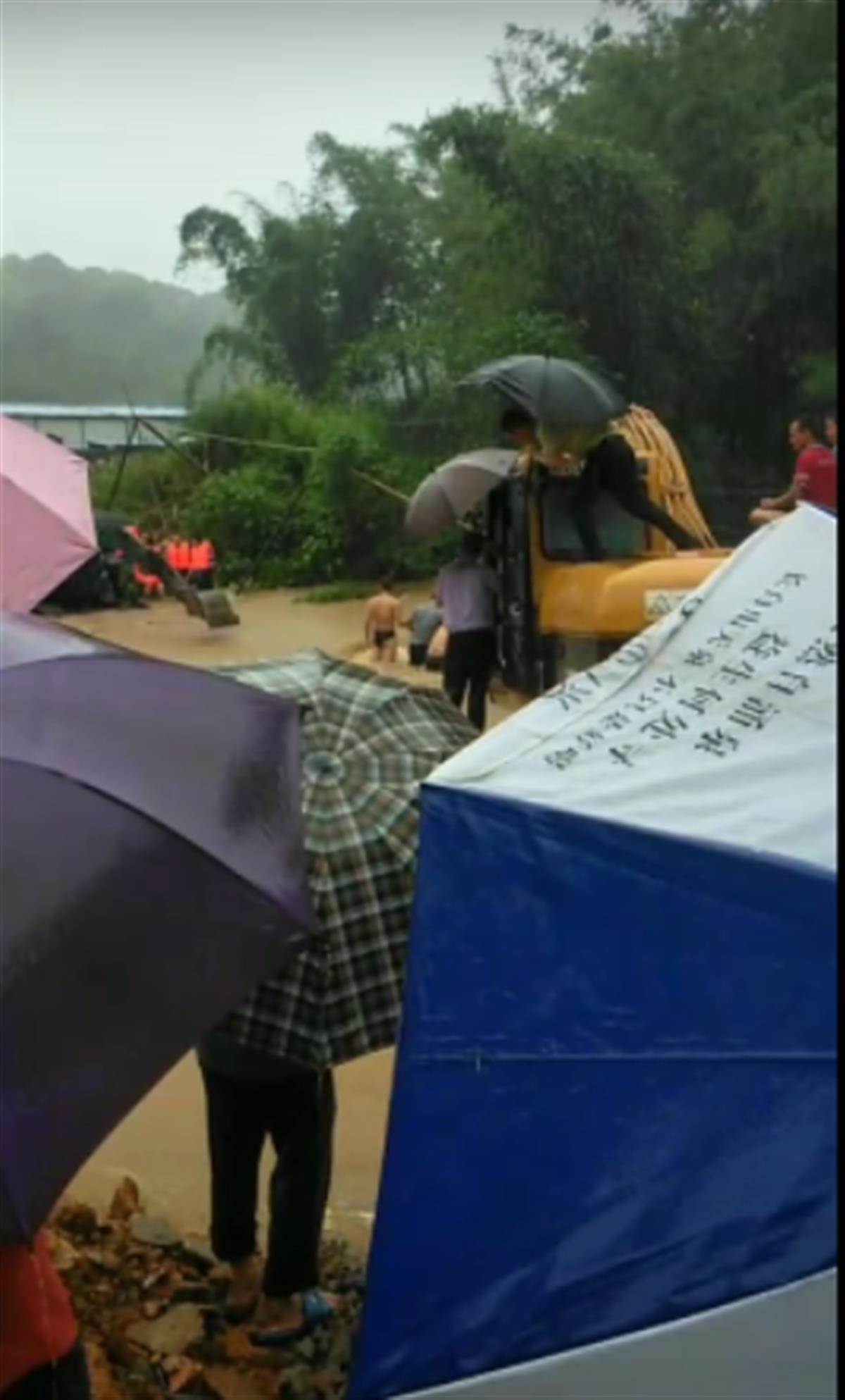 11日下午,松柏村一名村民告诉极目新闻记者,当日上午,有车辆来到村里协助抗洪,驶过村里的平水桥时,不慎被洪水冲走,当时有1人从车内成功逃出。随后,汽车被卡在桥洞,当地居民开着挖机等到场,和相关部门的救援人员一起救出车内另一名被困人员,他当时也参与了救援。但车内仍疑似有人失联。