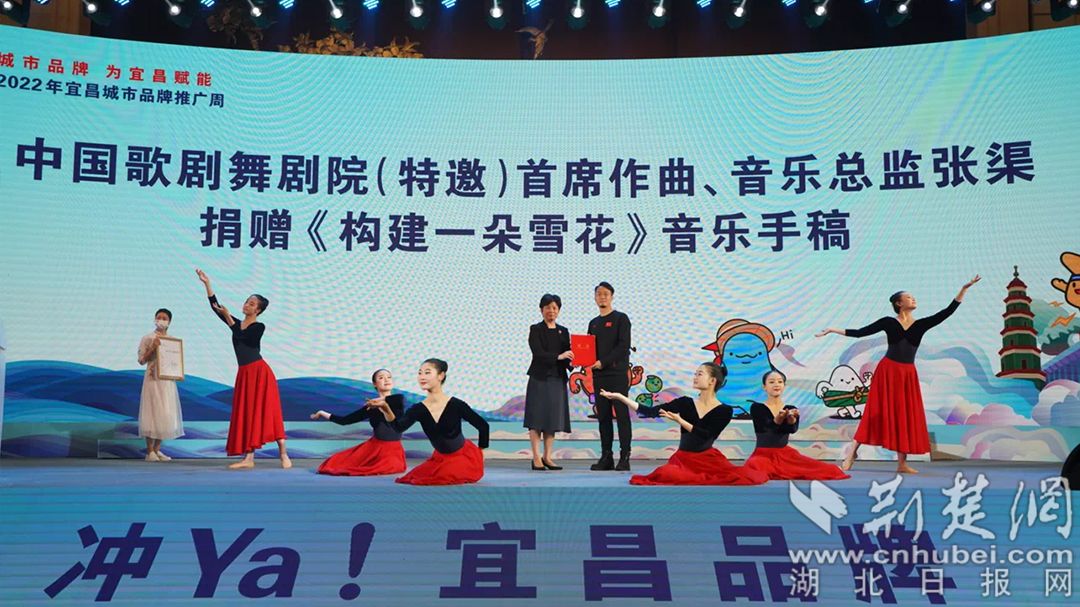 同时,北京冬奥会开幕式作曲、知名作曲家、音乐制作人、国风音乐领军人张渠在仪式上向家乡宜昌捐赠《构建一朵雪花》创作手稿。北京冬奥会开幕式视效总监王志鸥团队代表捐赠北京冬奥会雪花导视牌。