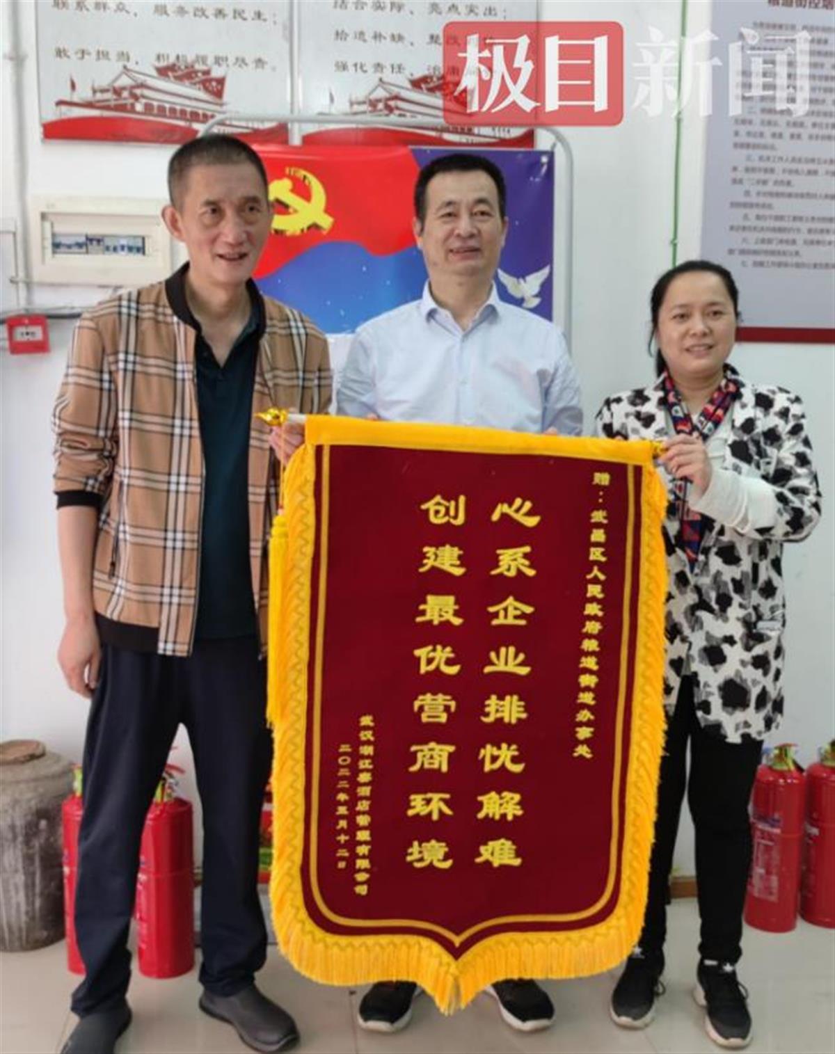 “感谢街道积极协调,帮企业渡过难关。”近日,武汉某餐饮企业负责人崔先生专程到武昌区粮道街道办事处,送上一面写有“心系企业排忧解难,创建最优营商环境”的锦旗,崔先生难掩激动的心情,对工作人员连声道谢。